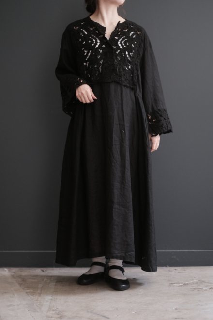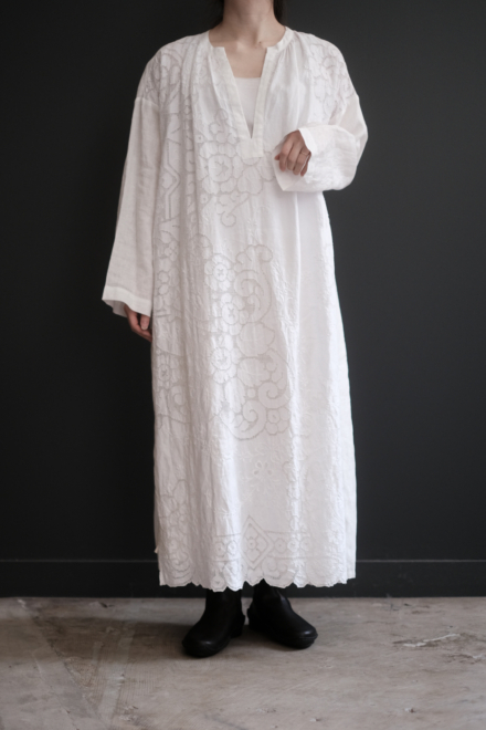 Re;li別注 No-collar shirt wide (vintage cotton sheet) col.off white