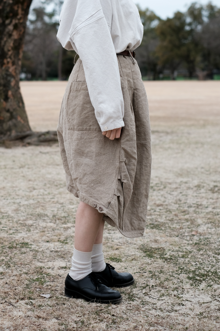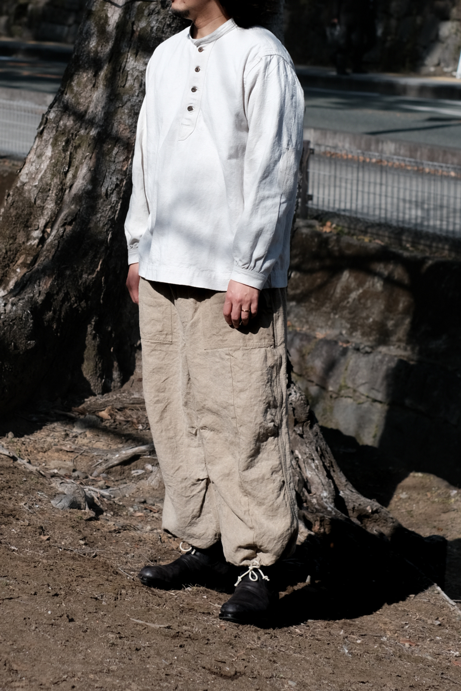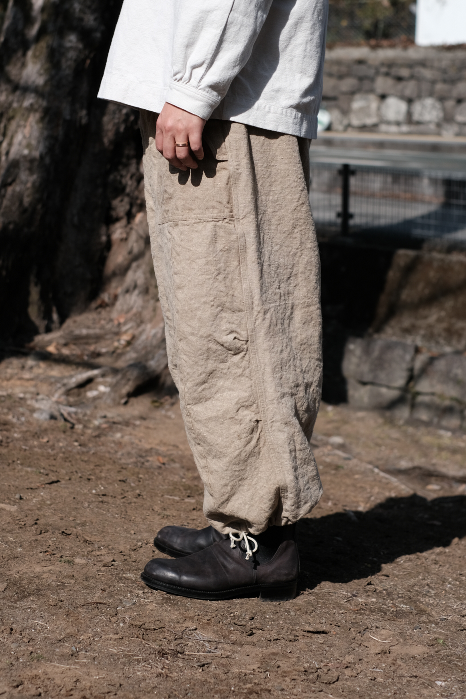 [Drawstring over pants (military vintage linen) col.natural / F ¥74,800]