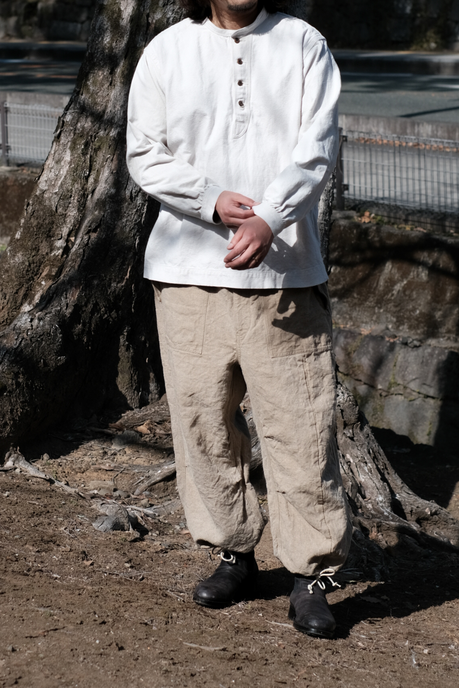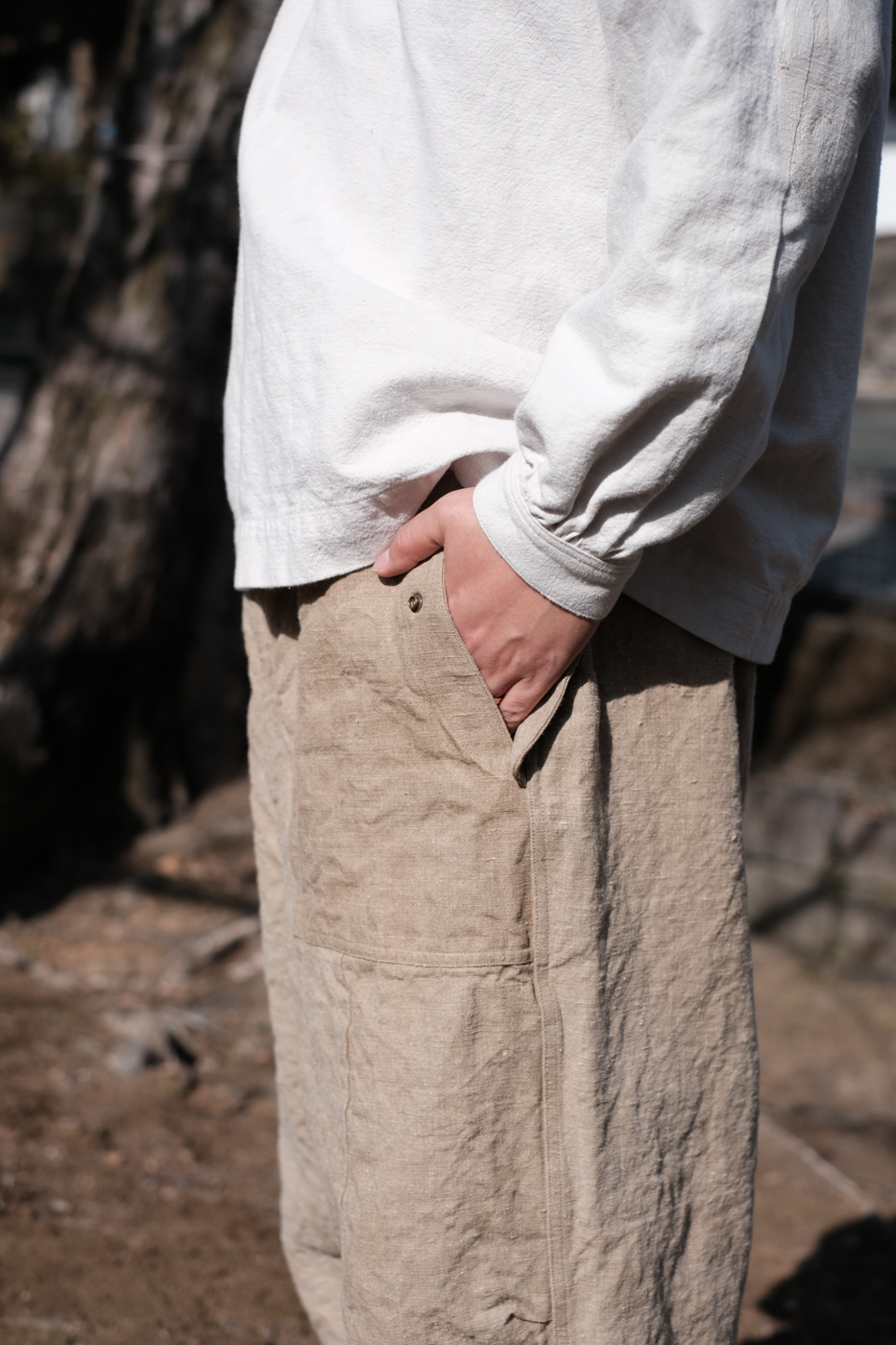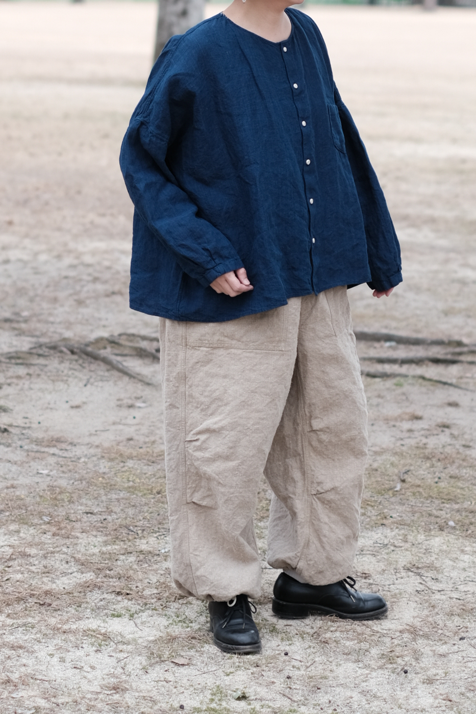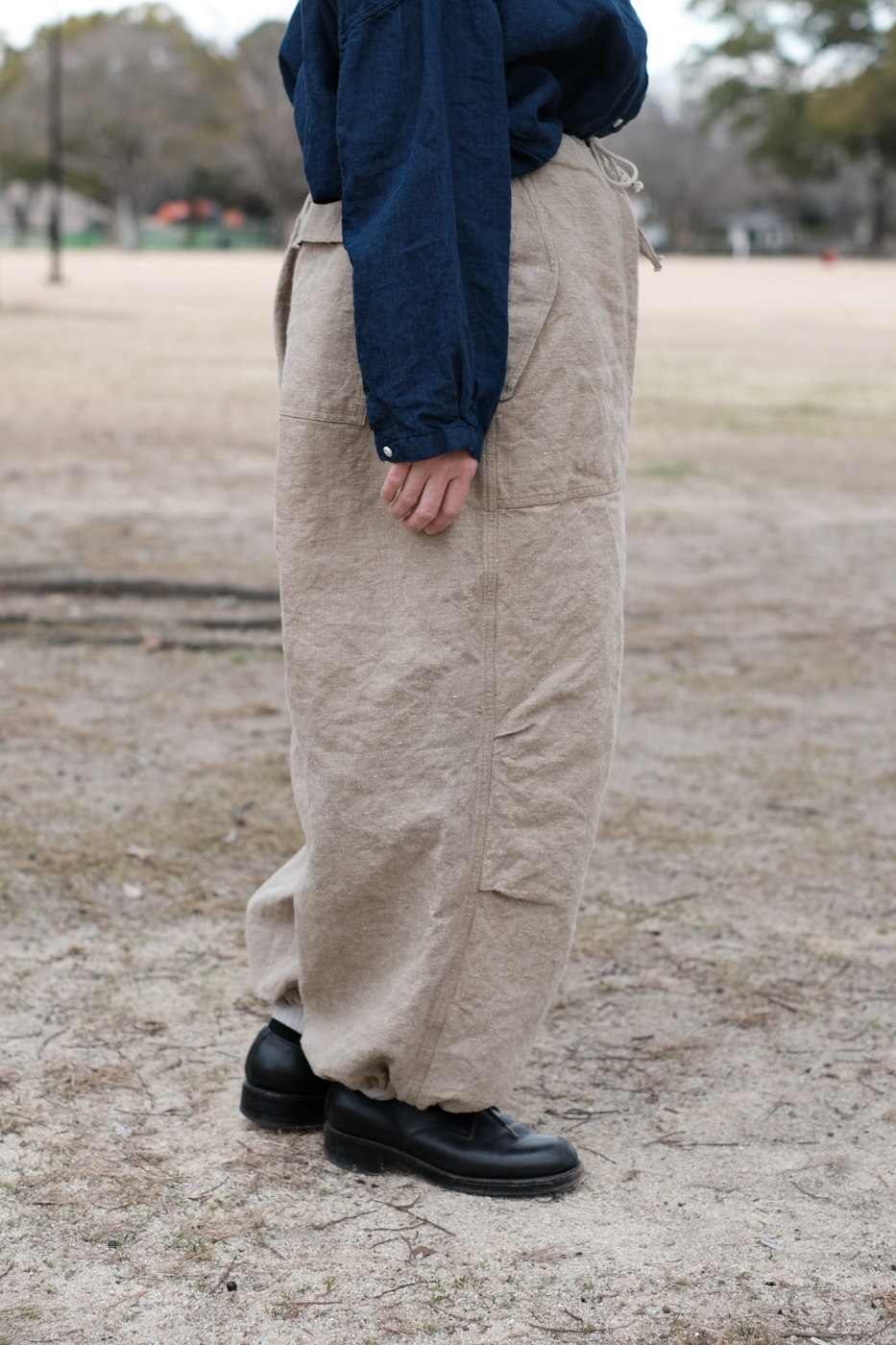[Drawstring over pants (military vintage linen) col.natural / F ¥74,800]