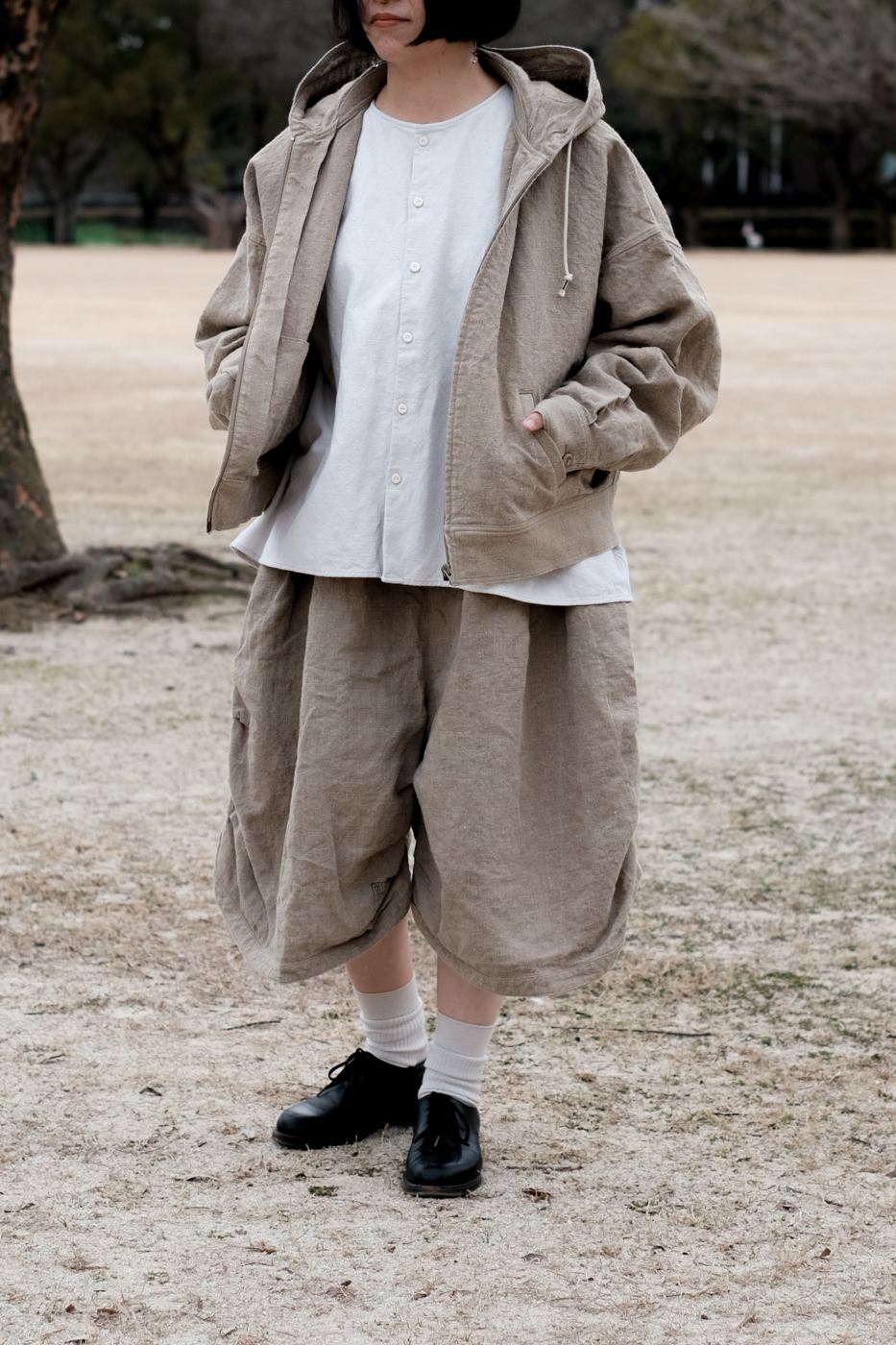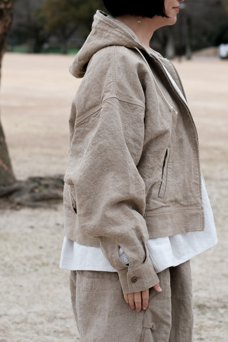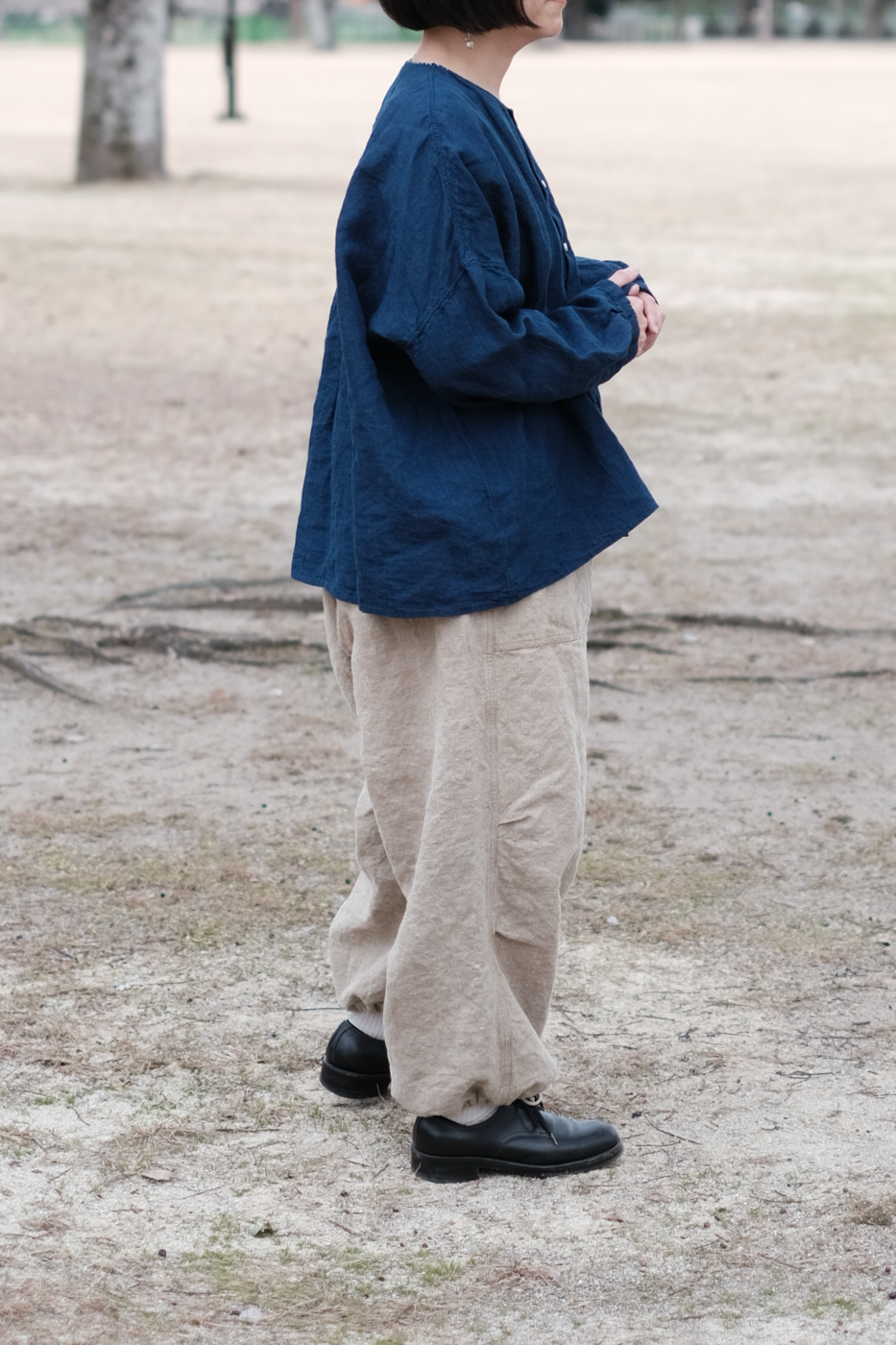[Drawstring over pants (military vintage linen) col.natural / F ¥74,800]