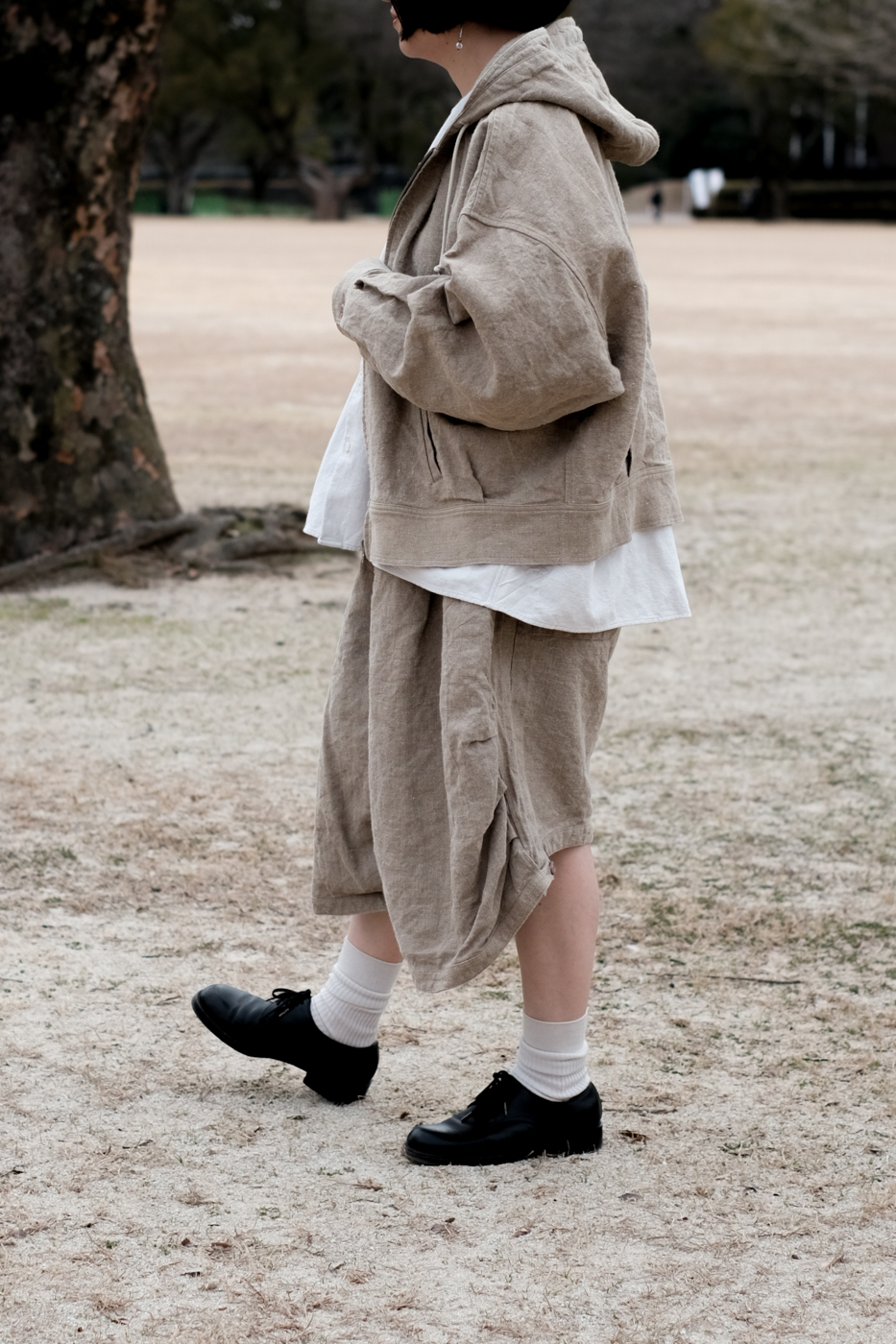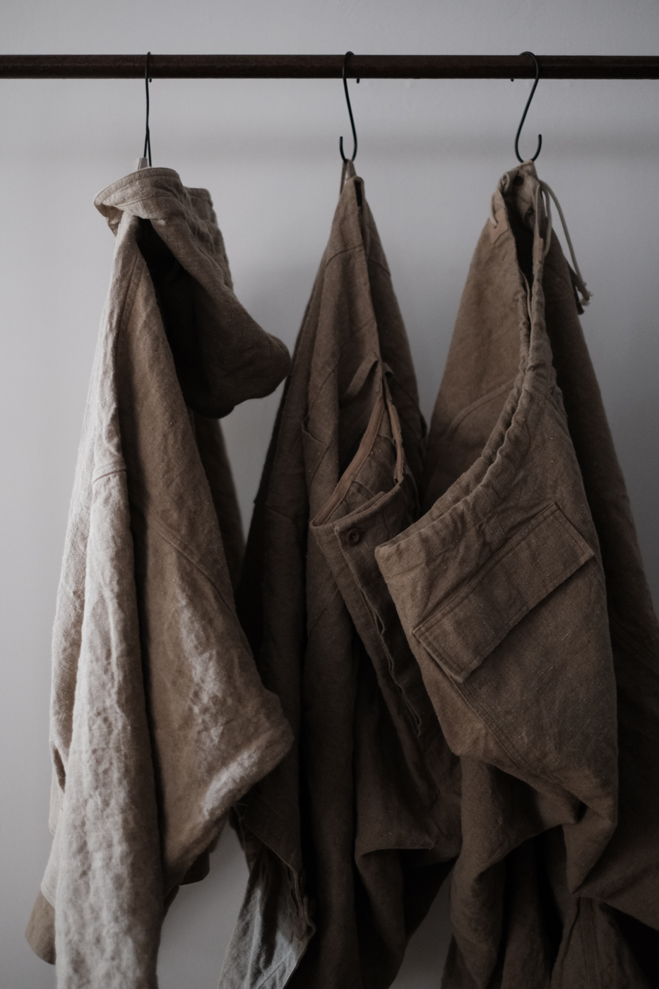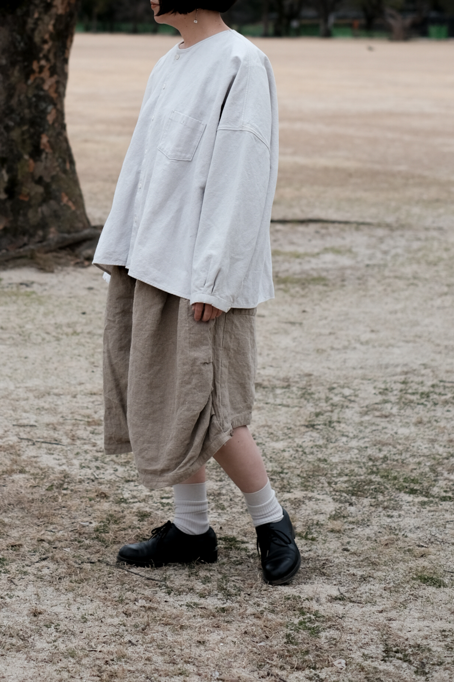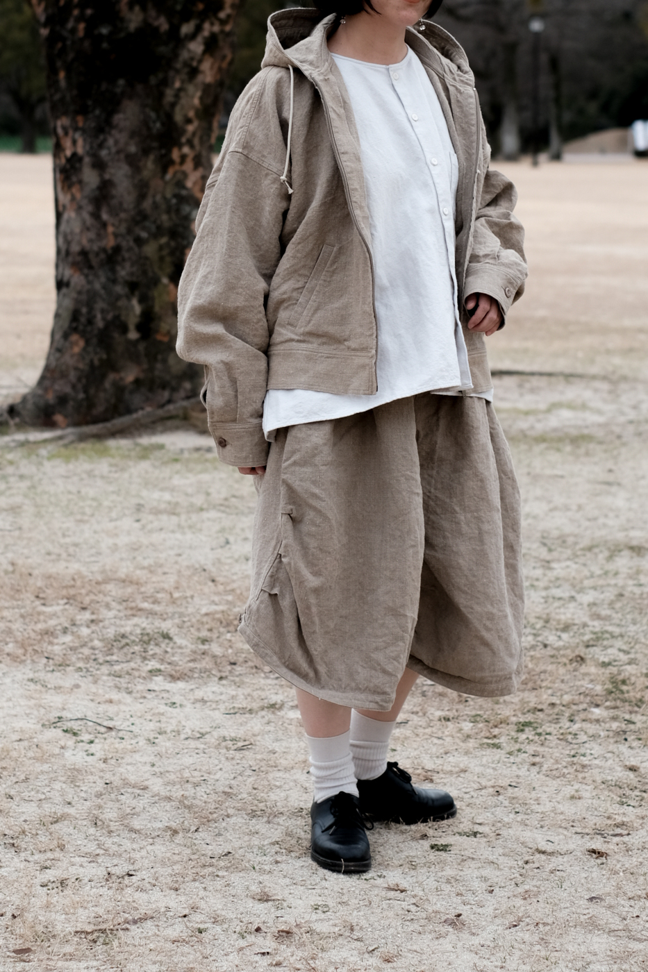 [Drawstring over pants (military vintage linen) col.natural / F ¥74,800]