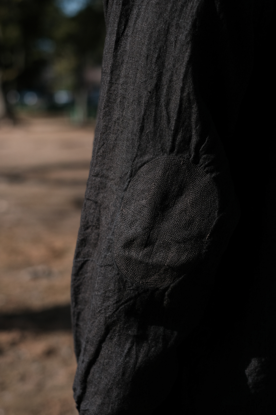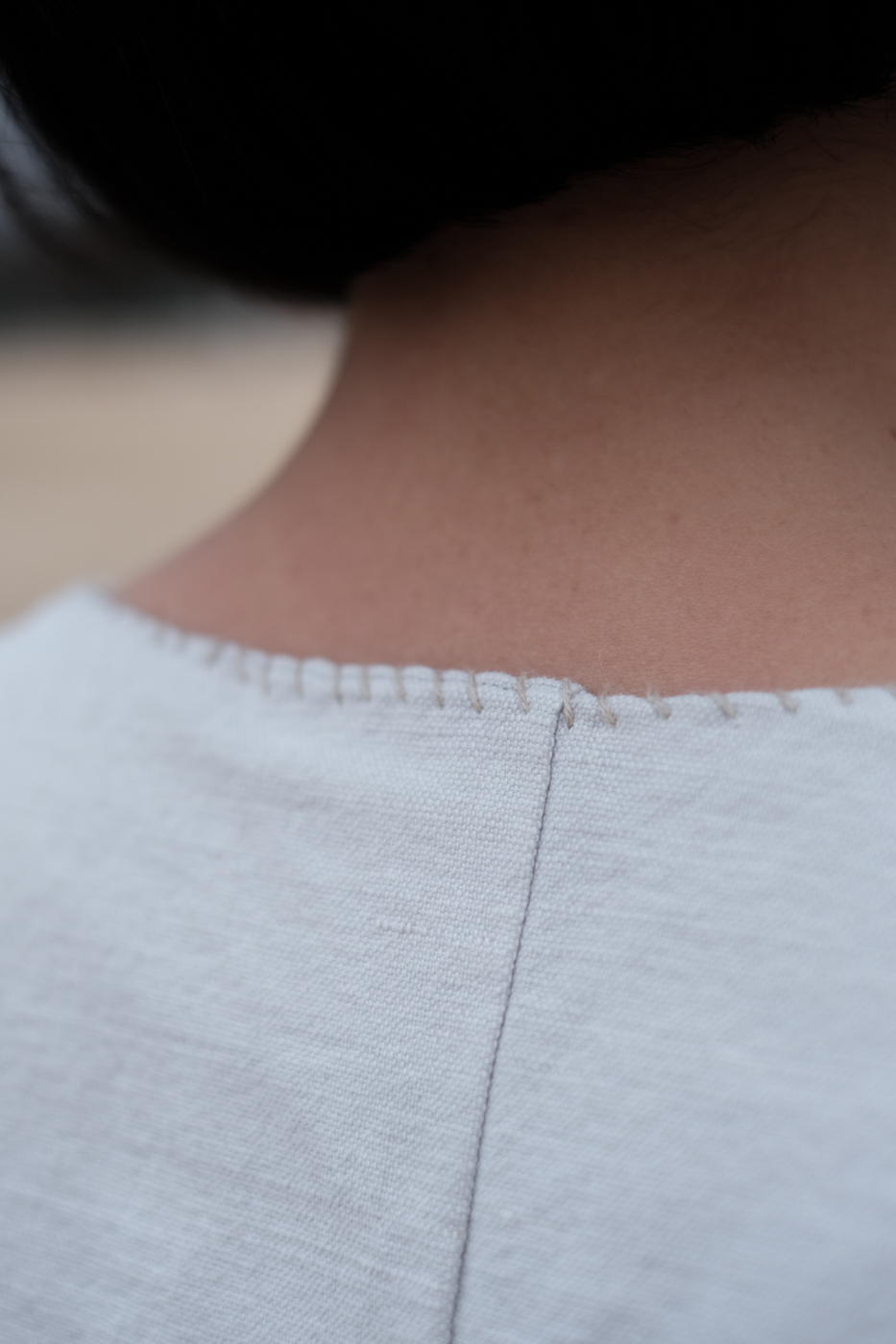 首の後ろには無数に連なるステッチワーク。