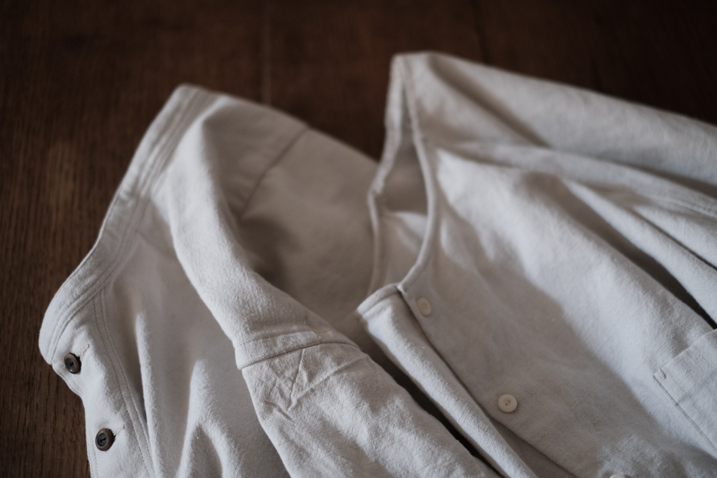[Henry neck blouse (vintage cotton sheet) col.off white / S,M,L ¥63,800]