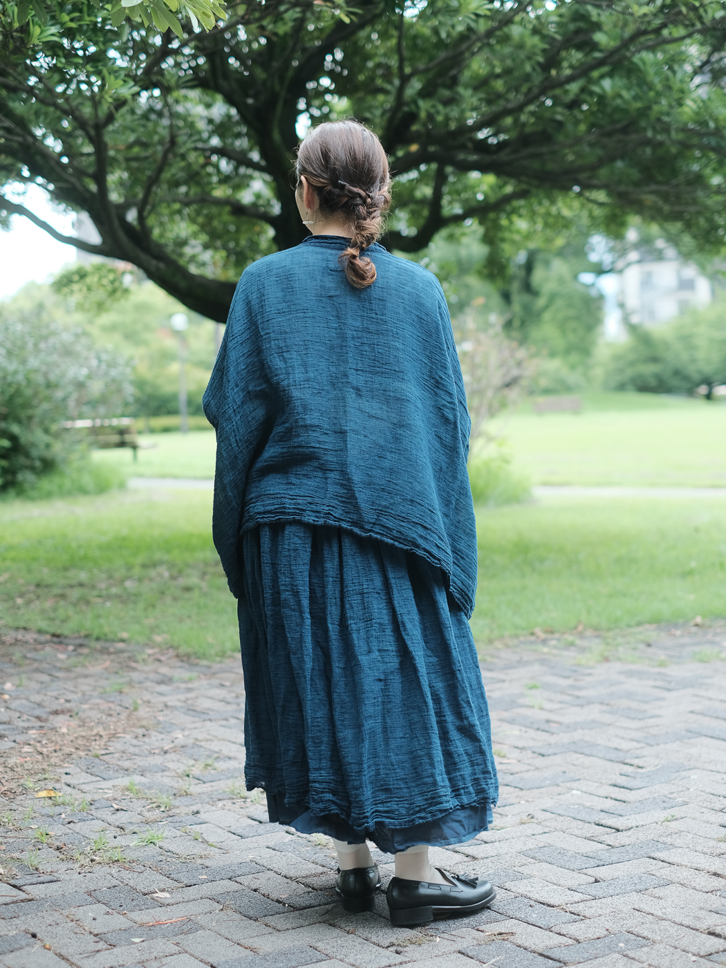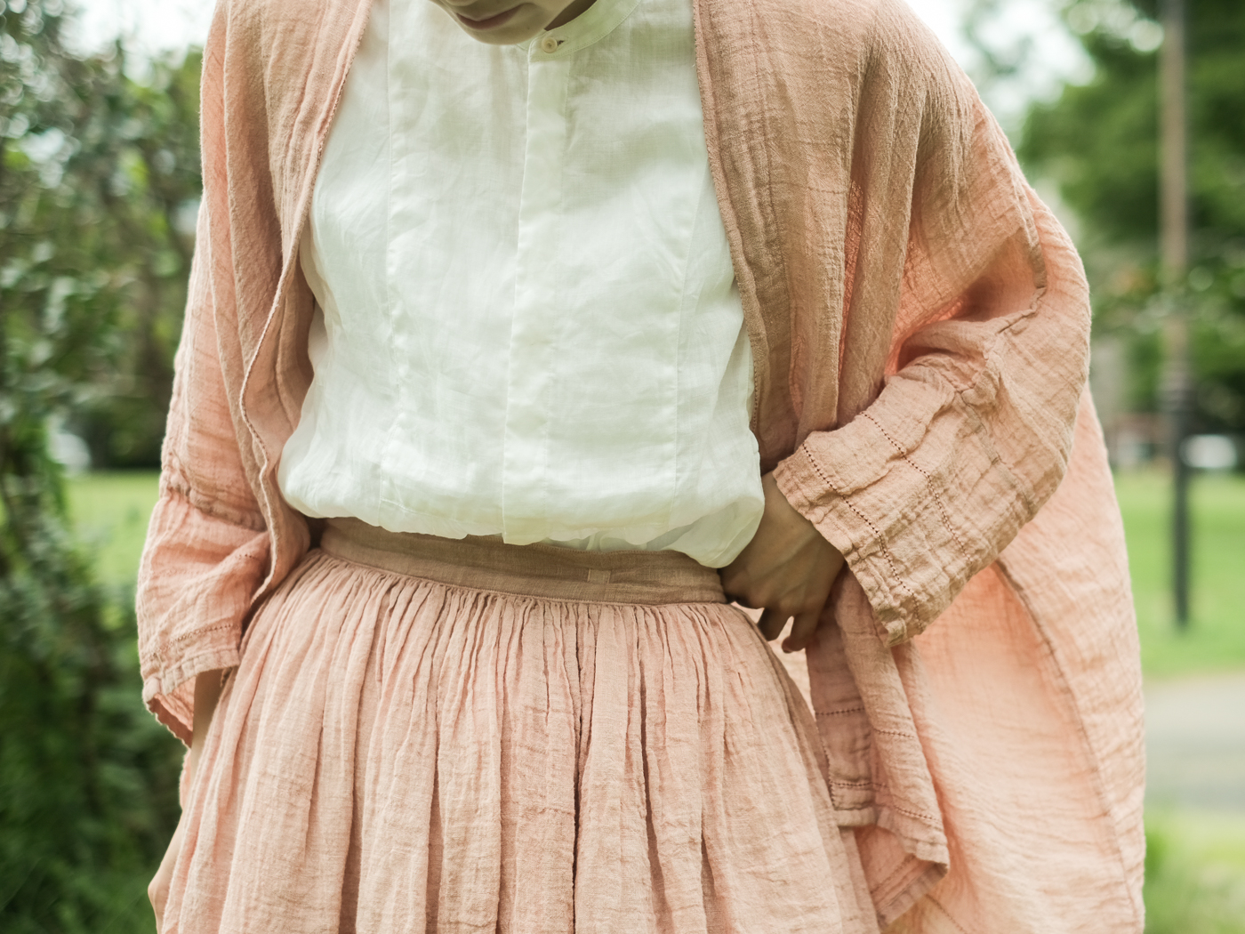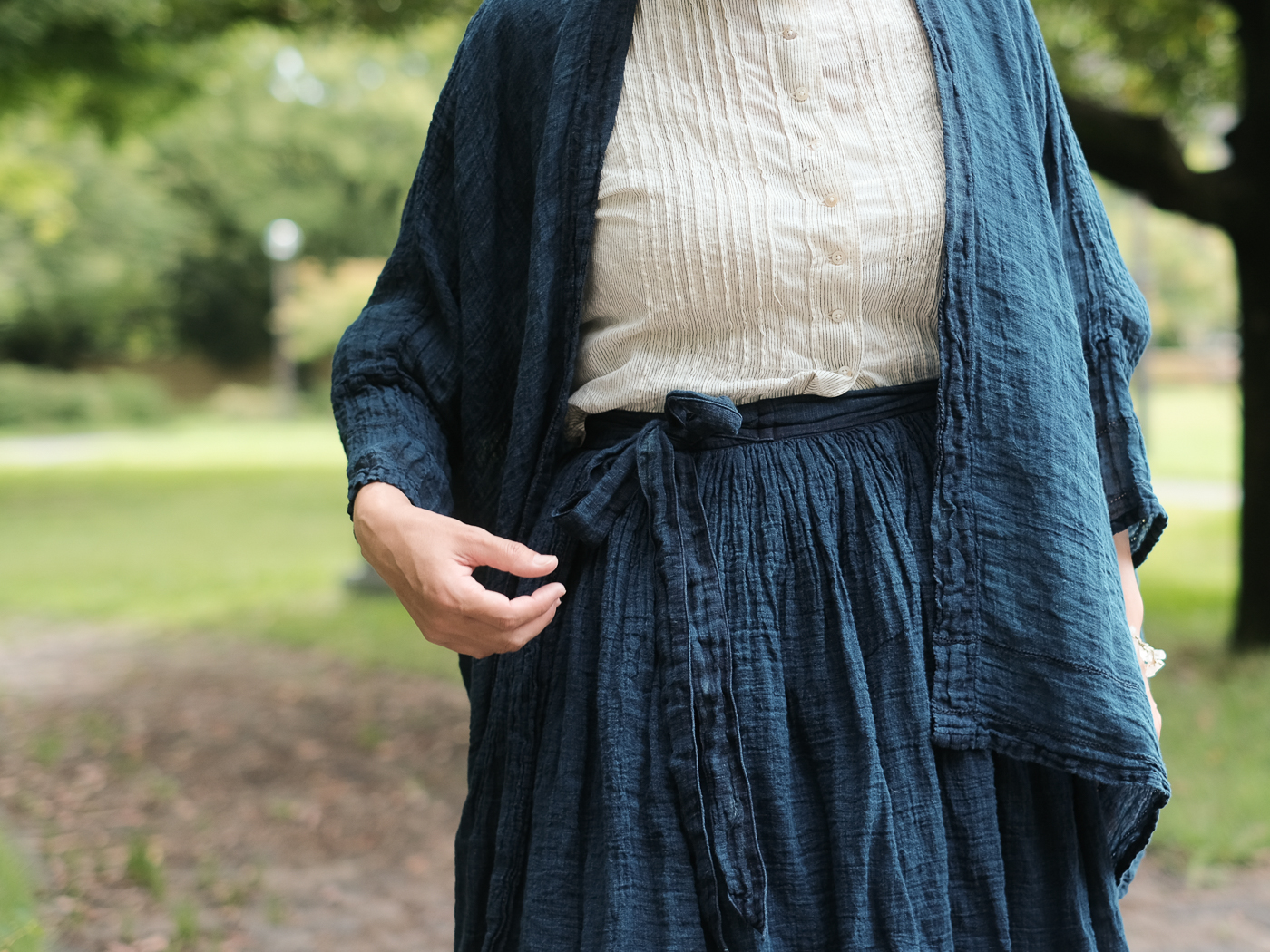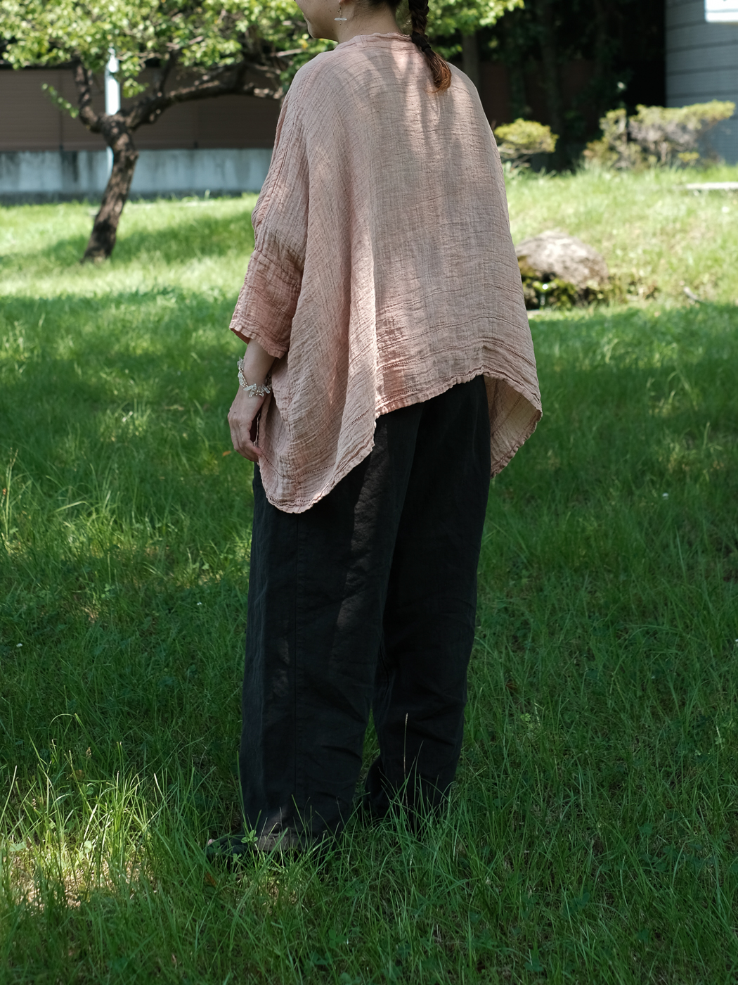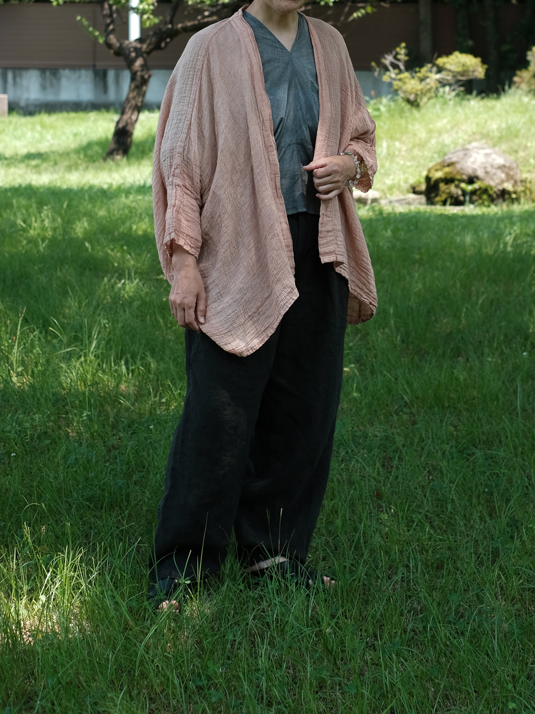 リネンの一枚物の羽織が重宝する季節、
