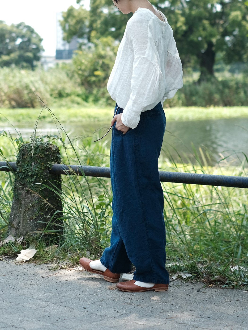 [Drawstring over pants (military vintage linen) col.natural / F ¥74,800]