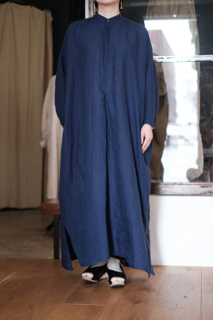 Back gather style coat 2 (High count washi linen) col.charcoal