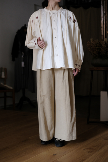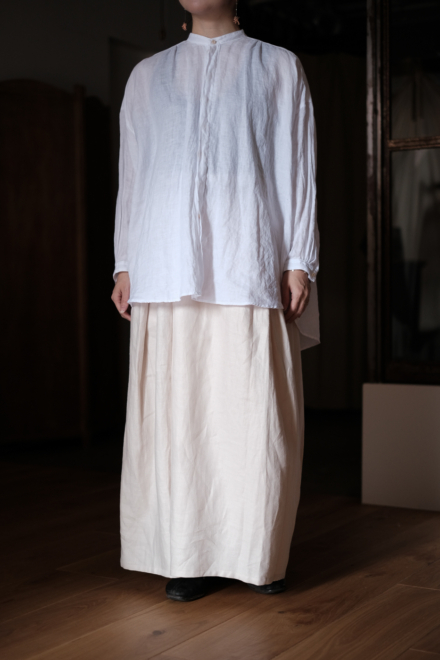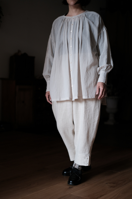 Open gather over blouse (wool linen herringbone) col.cream herringbone