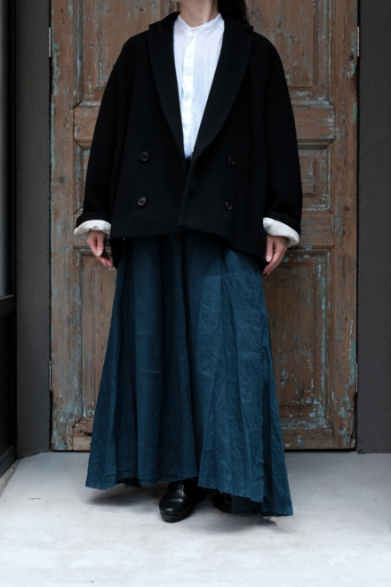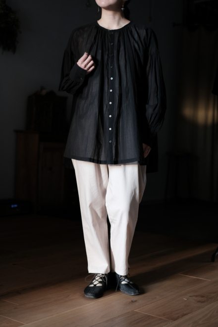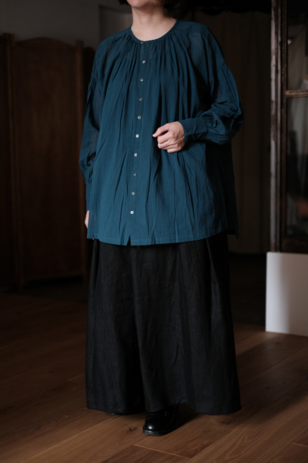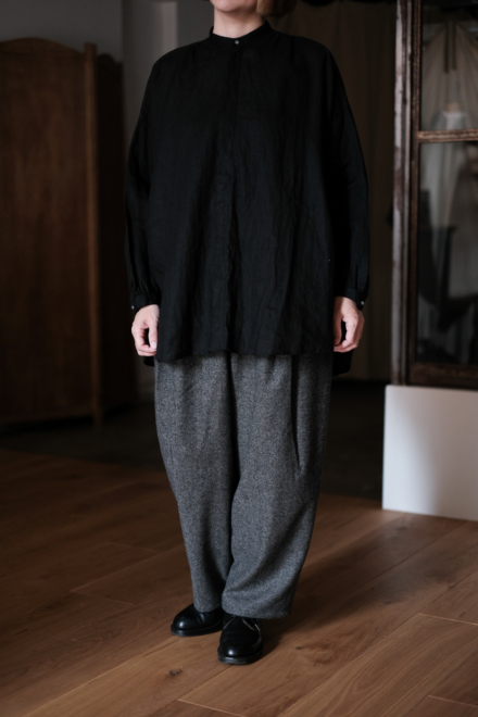 Open gather over blouse (wool linen twill) col.black