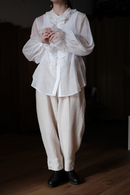 bishop-sleeve blouse col.white