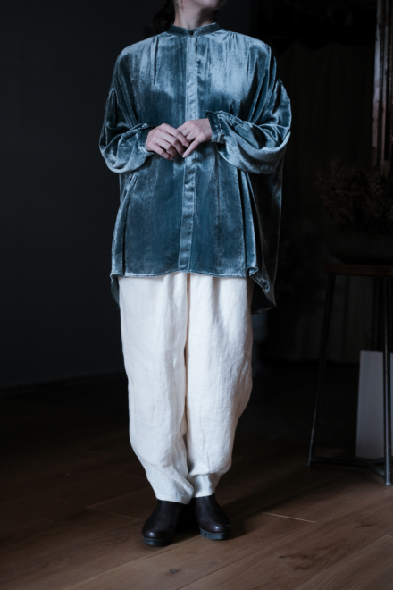 Open gather over blouse (wool linen twill) col.khaki