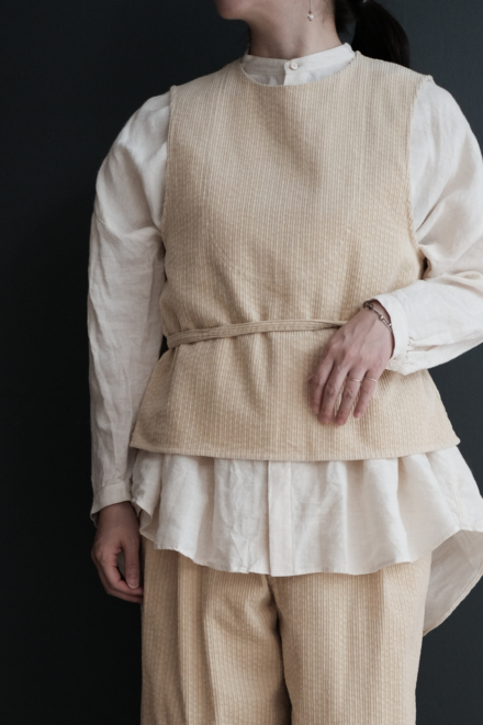 Open gather over blouse (Buff cloth cotton) col.brush brown