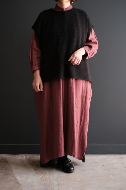 Wide gather blouse (Cotton cashmere broad) col.brown