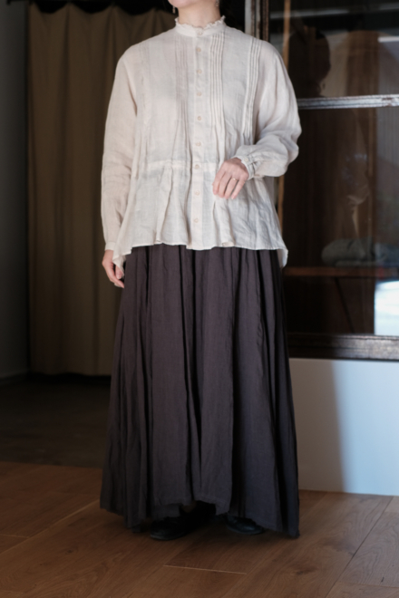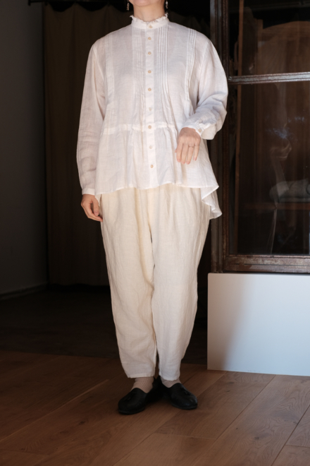 Wide gather blouse (High count cotton typewriter ) col.off white