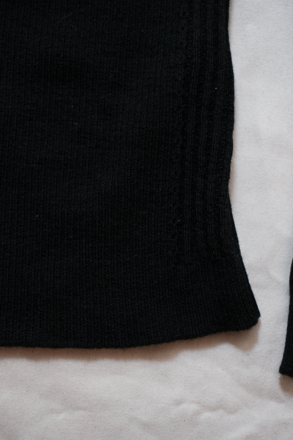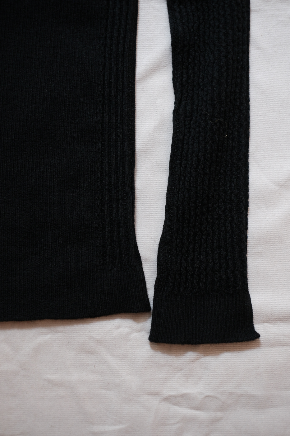 胸元からの編地の切り替えと、