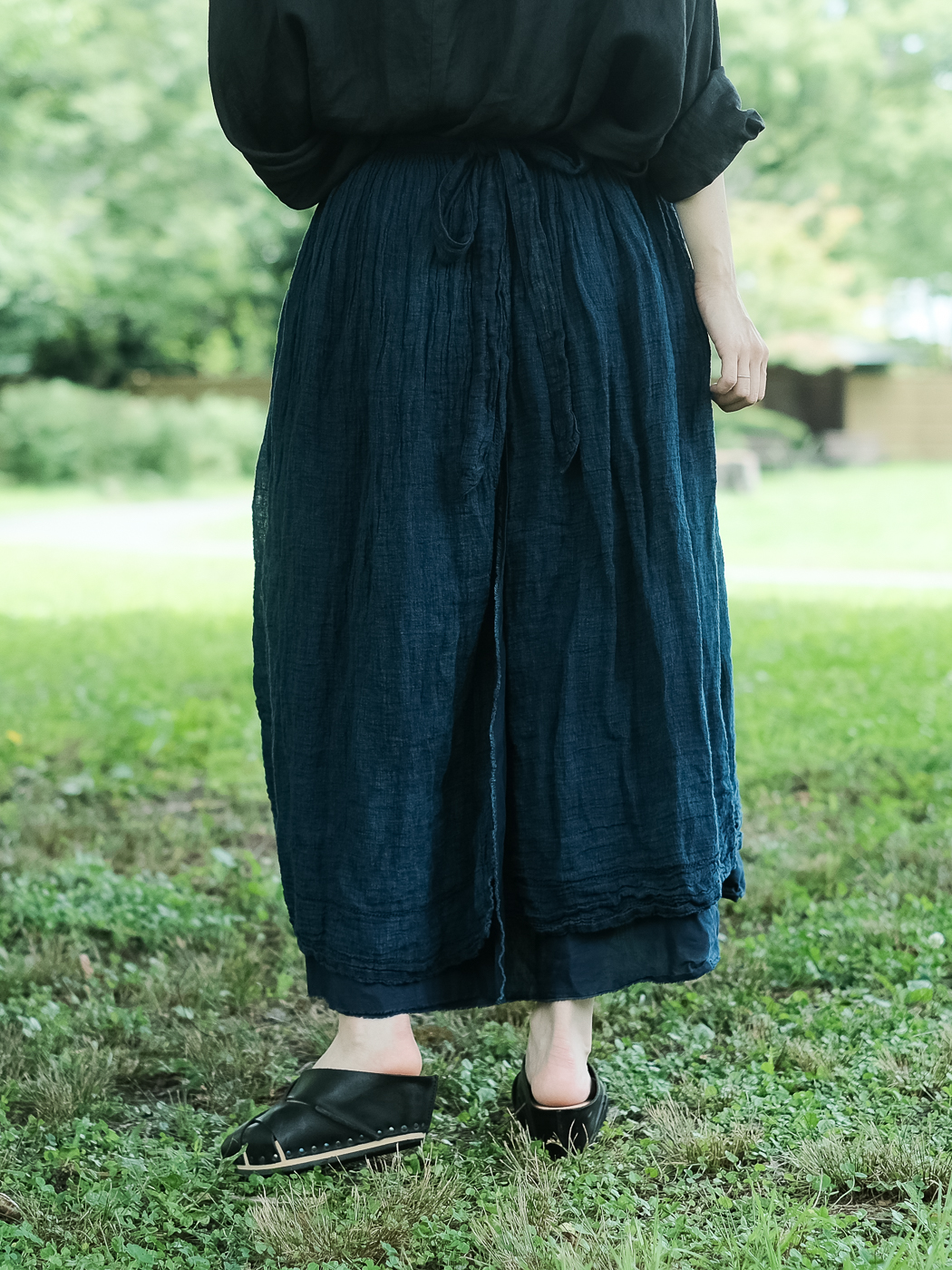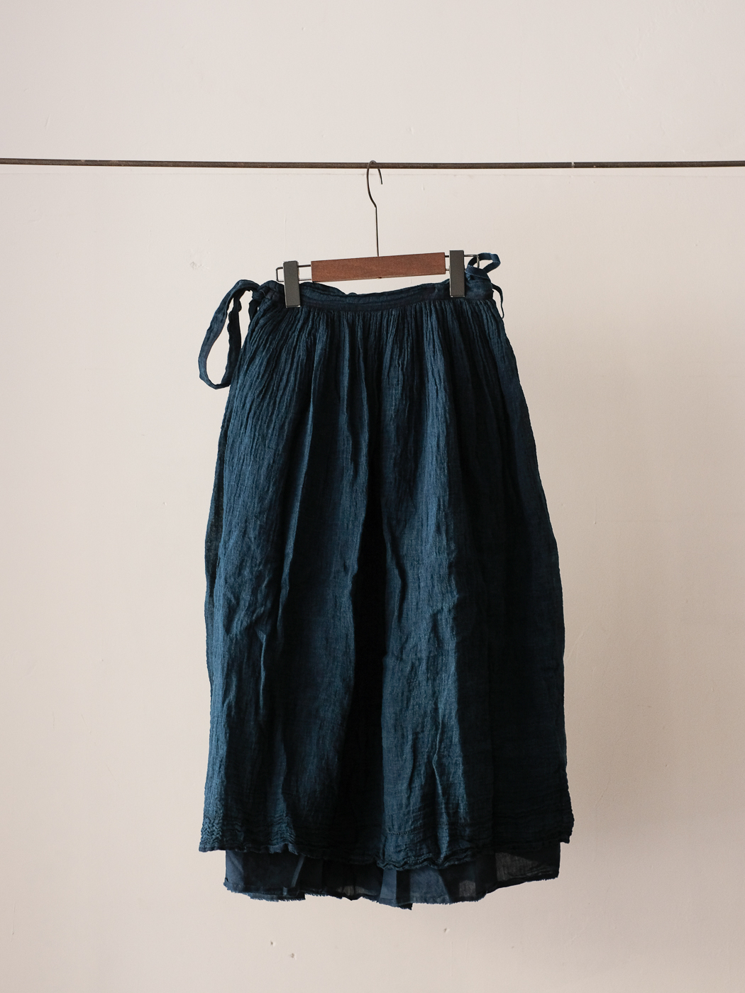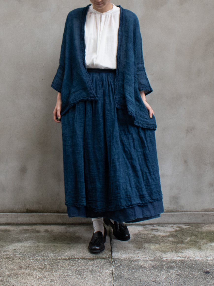 別注 Wrap gather skirt middle (High count linen gauze) col.indigo
