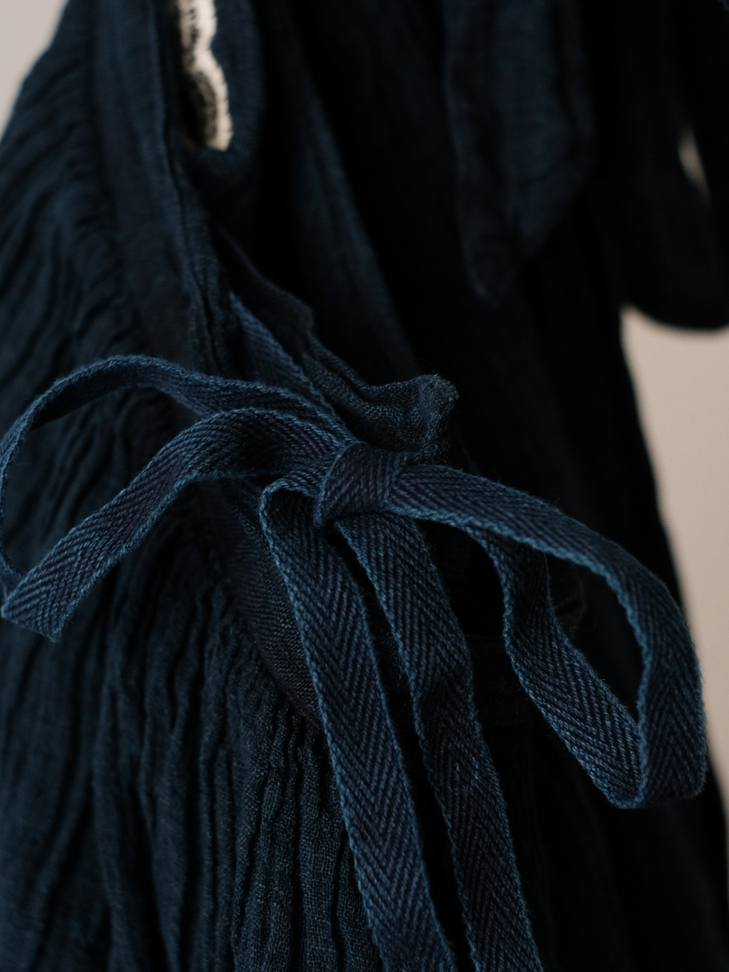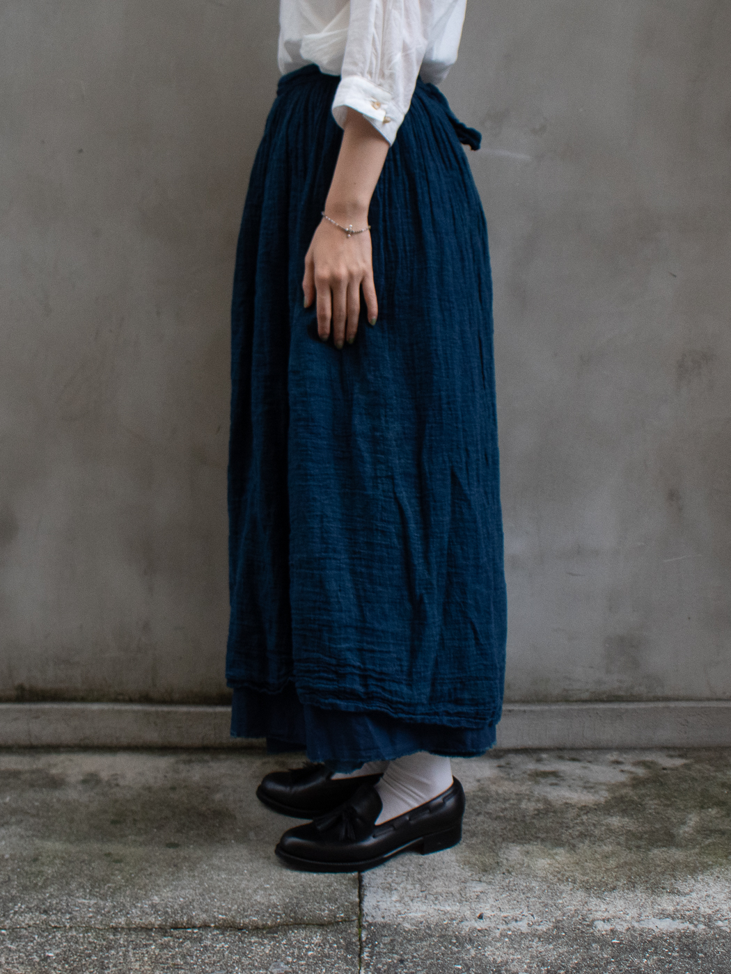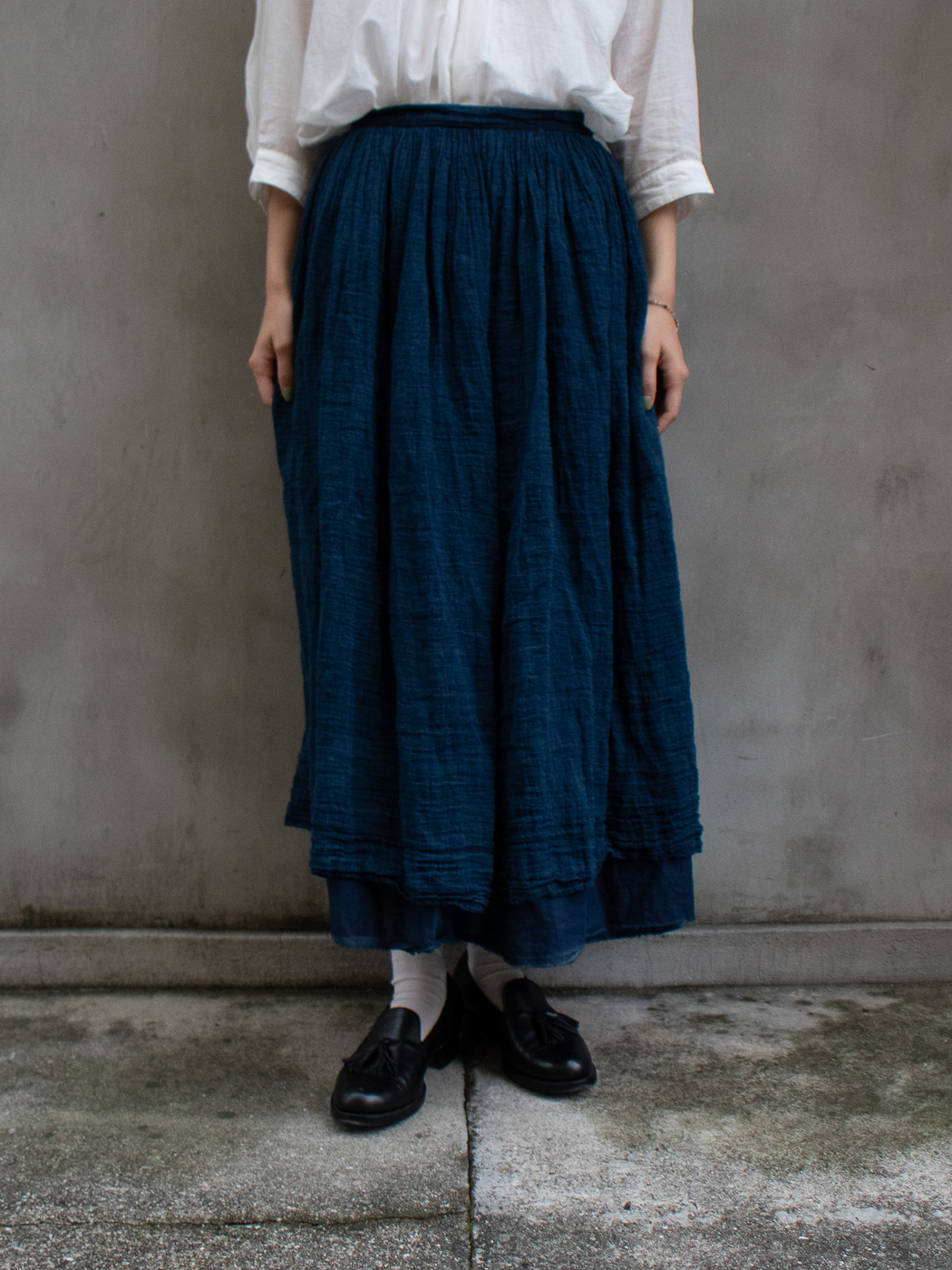 別注 Wrap gather skirt middle (High count linen gauze) col.indigo