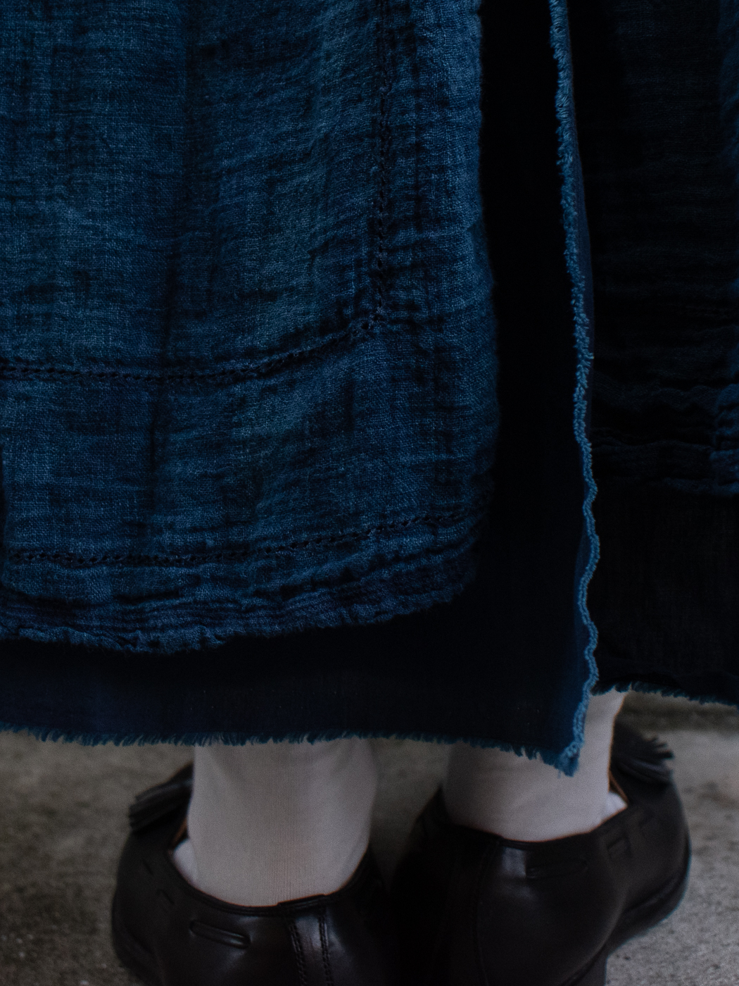 裾やスカートが重なる部分に陰影があり