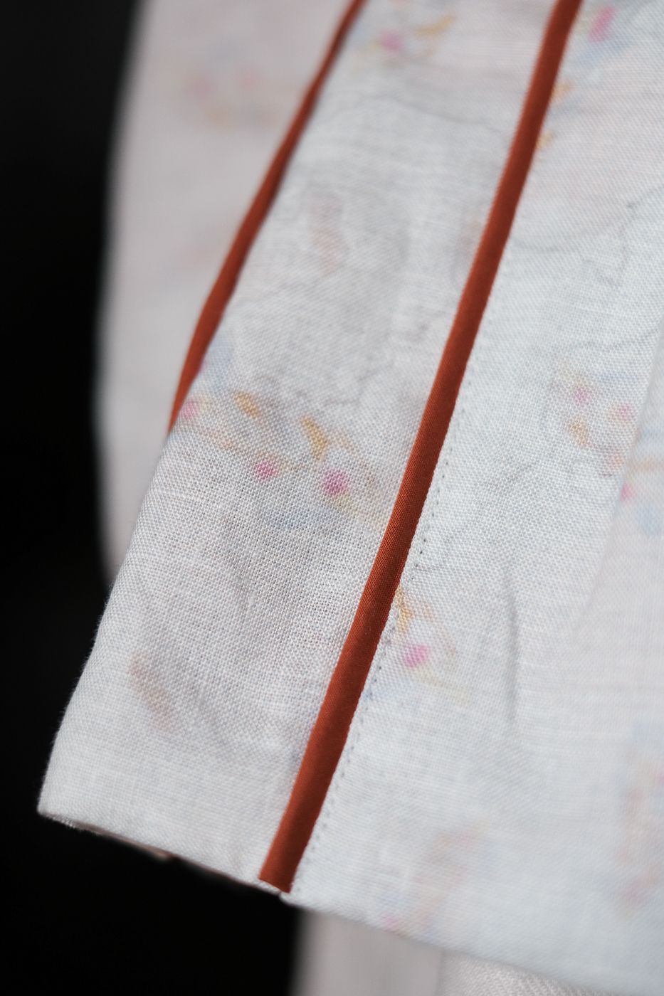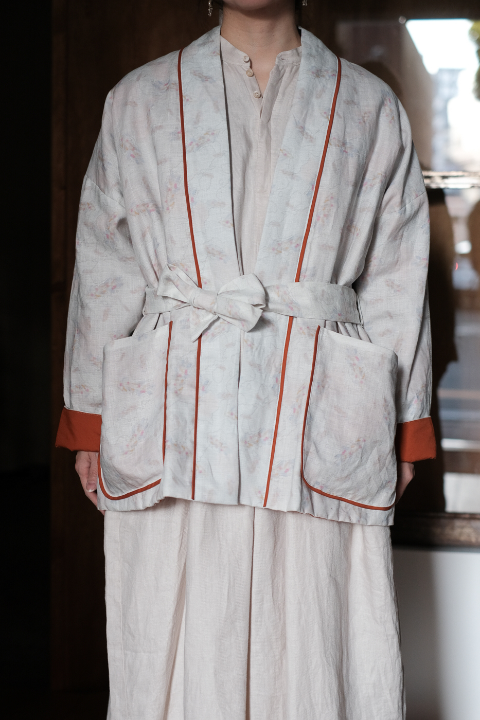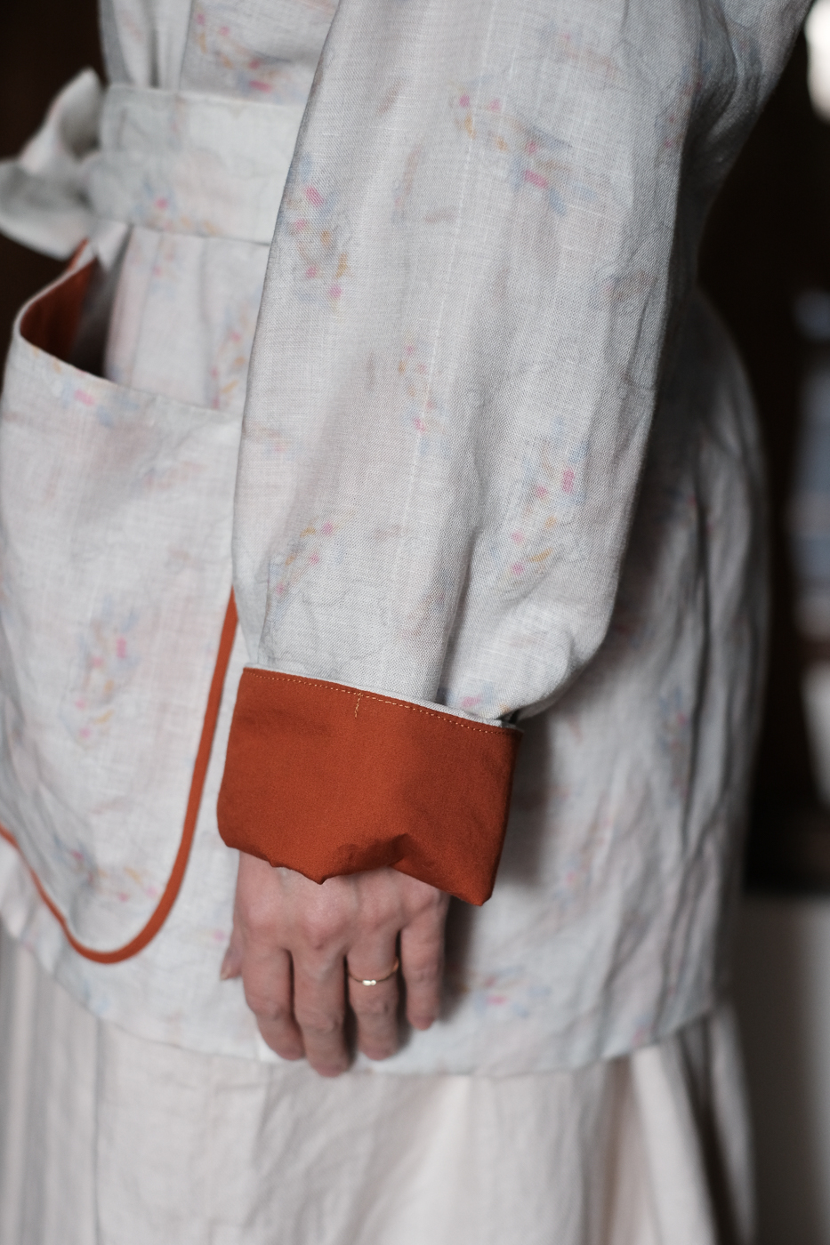 淡いトーンの身頃にきりっとしたオレンジの