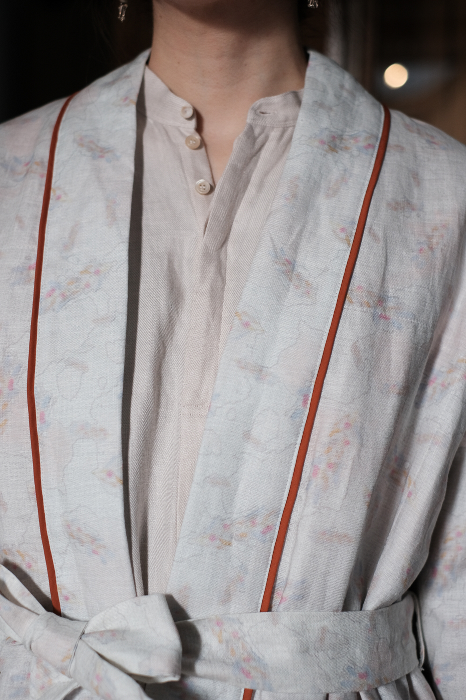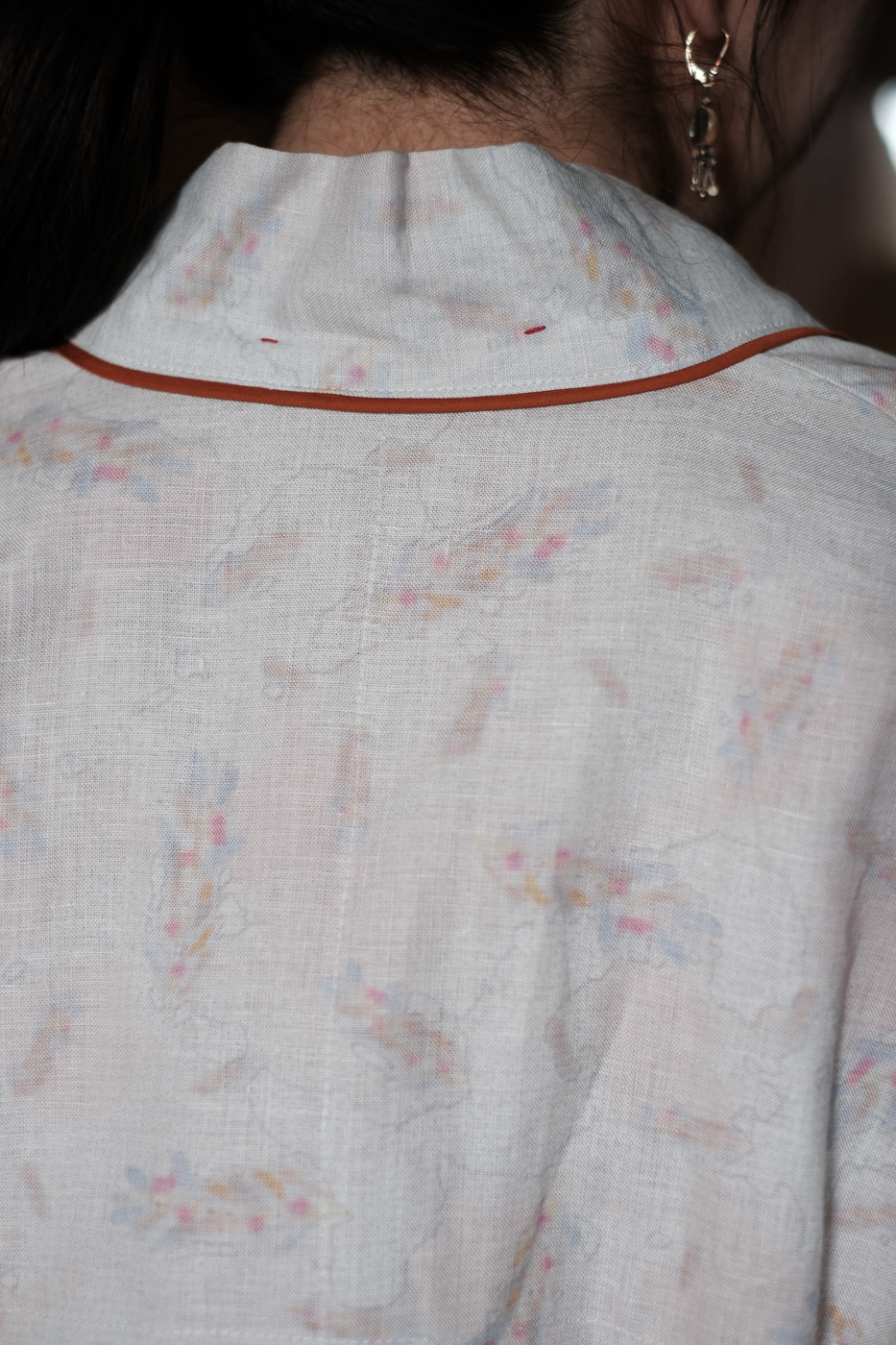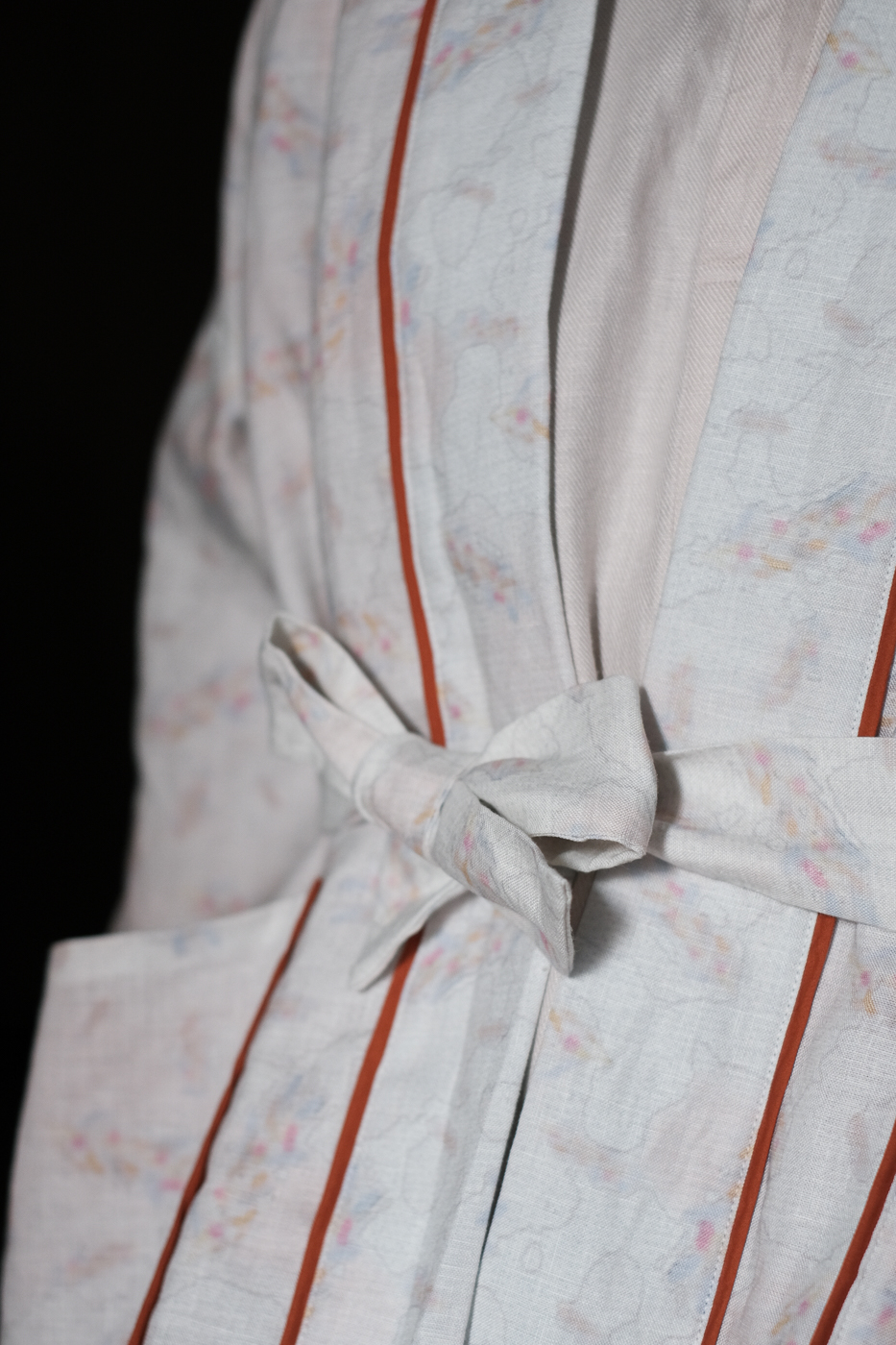 淡いトーンの身頃にきりっとしたオレンジの
