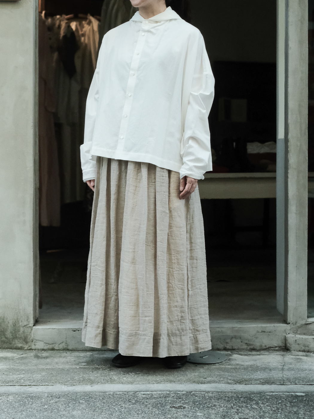 NO.06 Cotton herringbone フードワイドシャツ co.off white