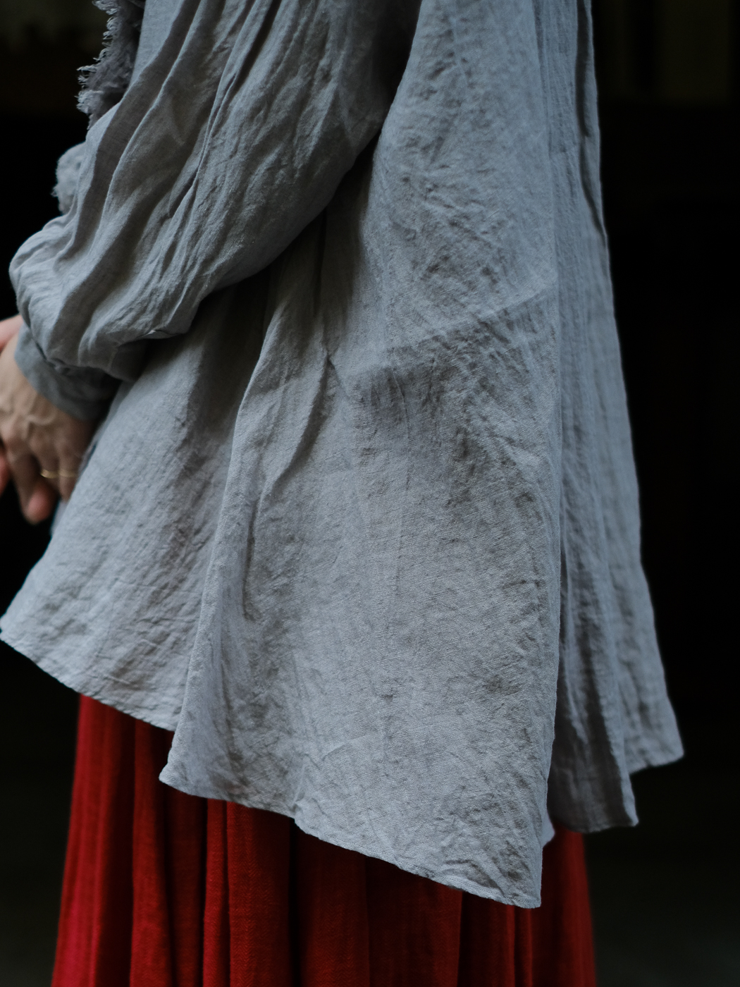 生地が袖口に溜まる雰囲気や着丈が長めで