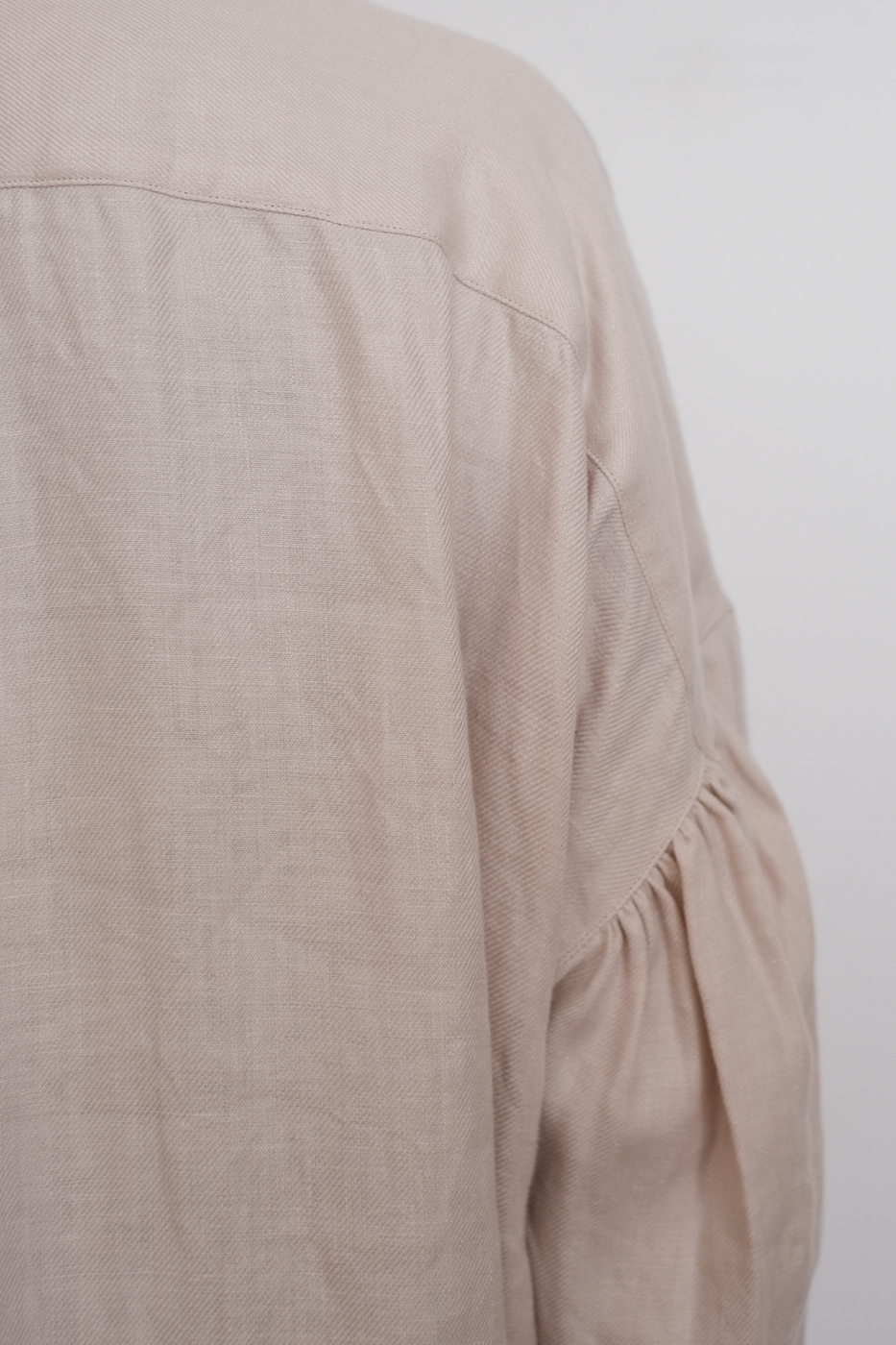 ボタンを開け放ち、後ろに抜いて着ていただくと