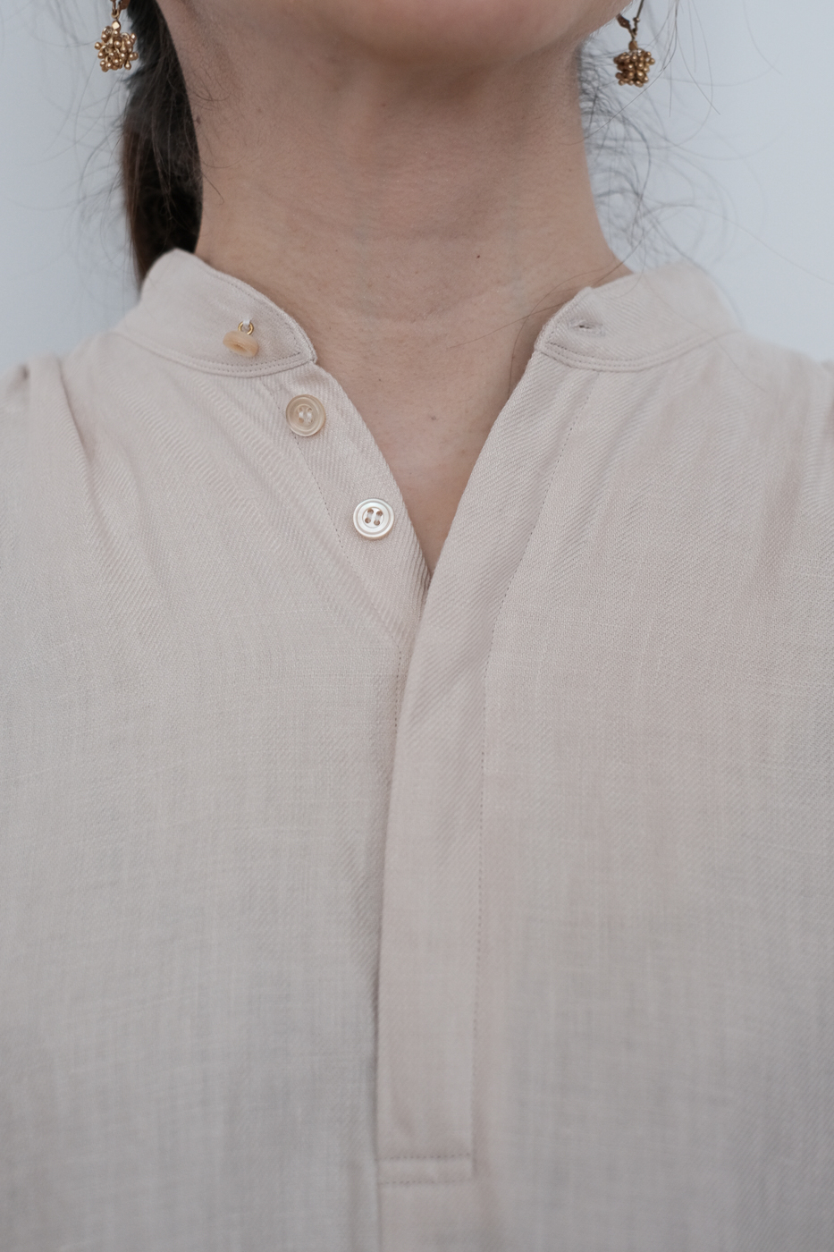 フロントの一番上と袖口のボタンは