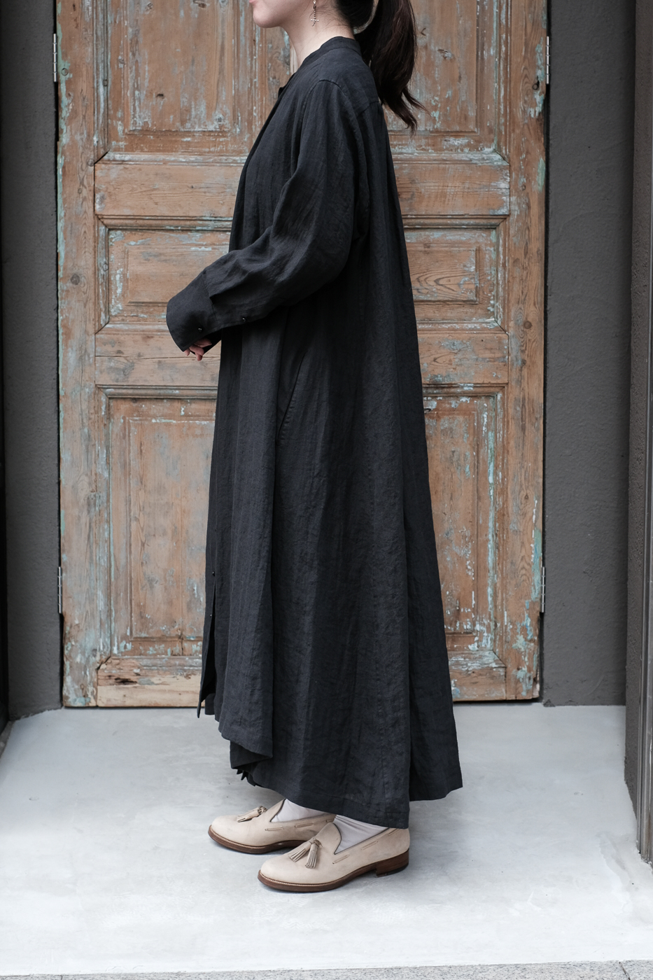 軽く自然なシワ感を残したリネン生地を使用しており、