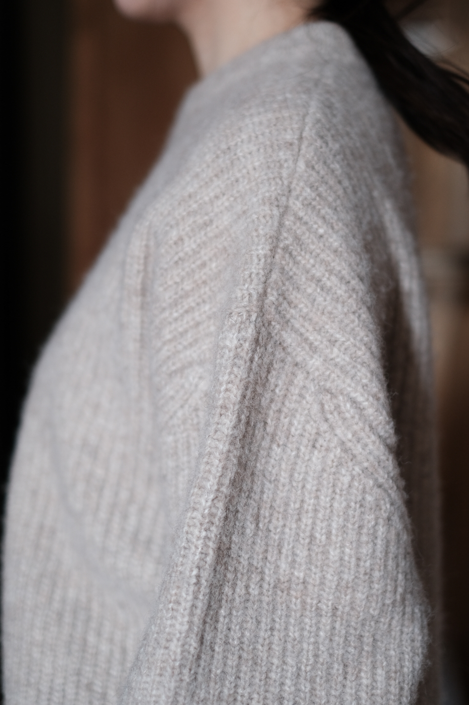 リブ編みのデザインがあたたかみをより引き出す。