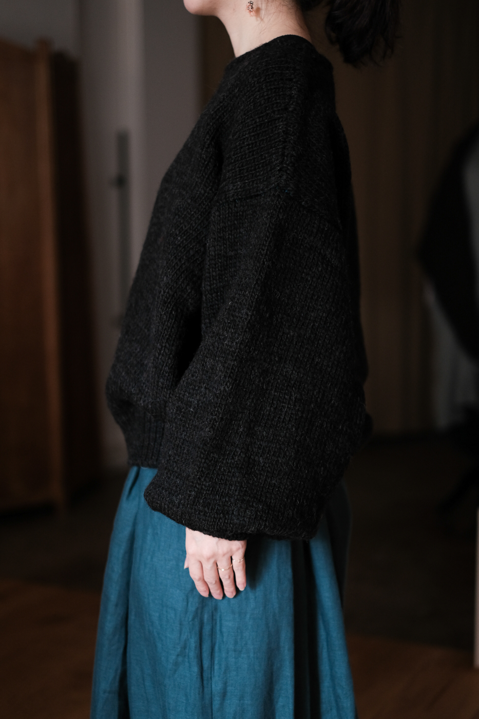 puff-sleeve pullover col.black