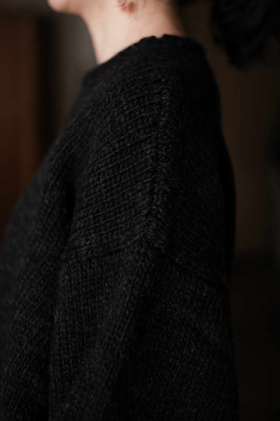 編地によって表現された丸みを帯びた身頃。