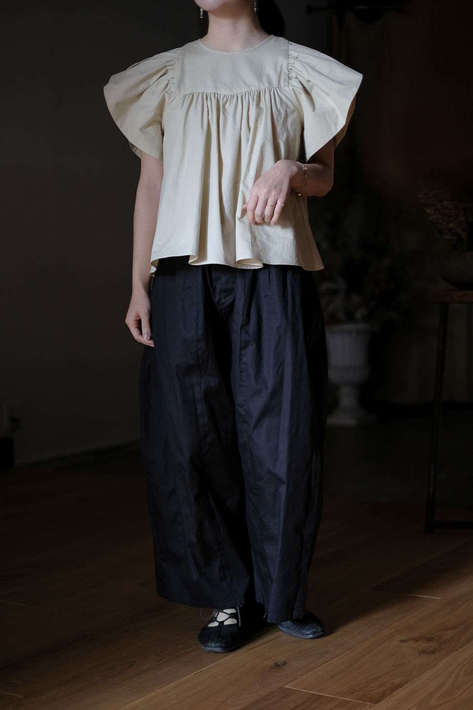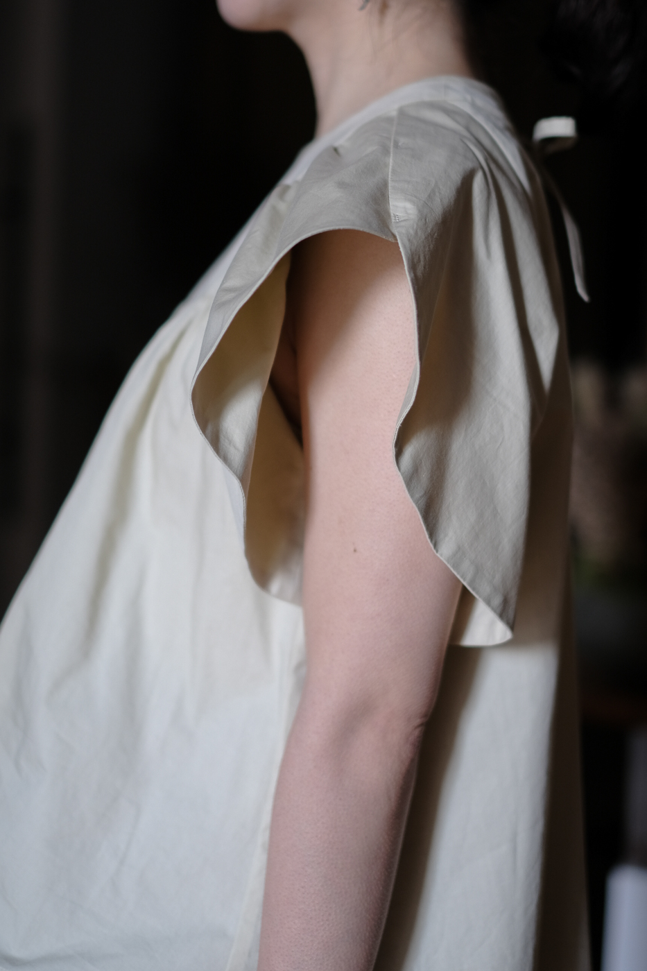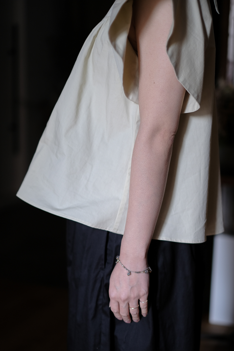 No.01 High count twill ケープスリーブブラウス col.yellow beige