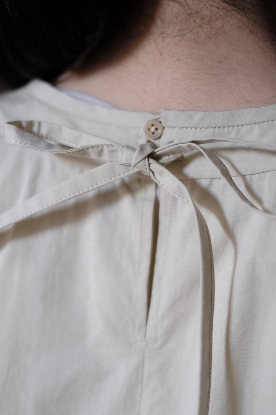 後ろの首元部分のボタンを外して