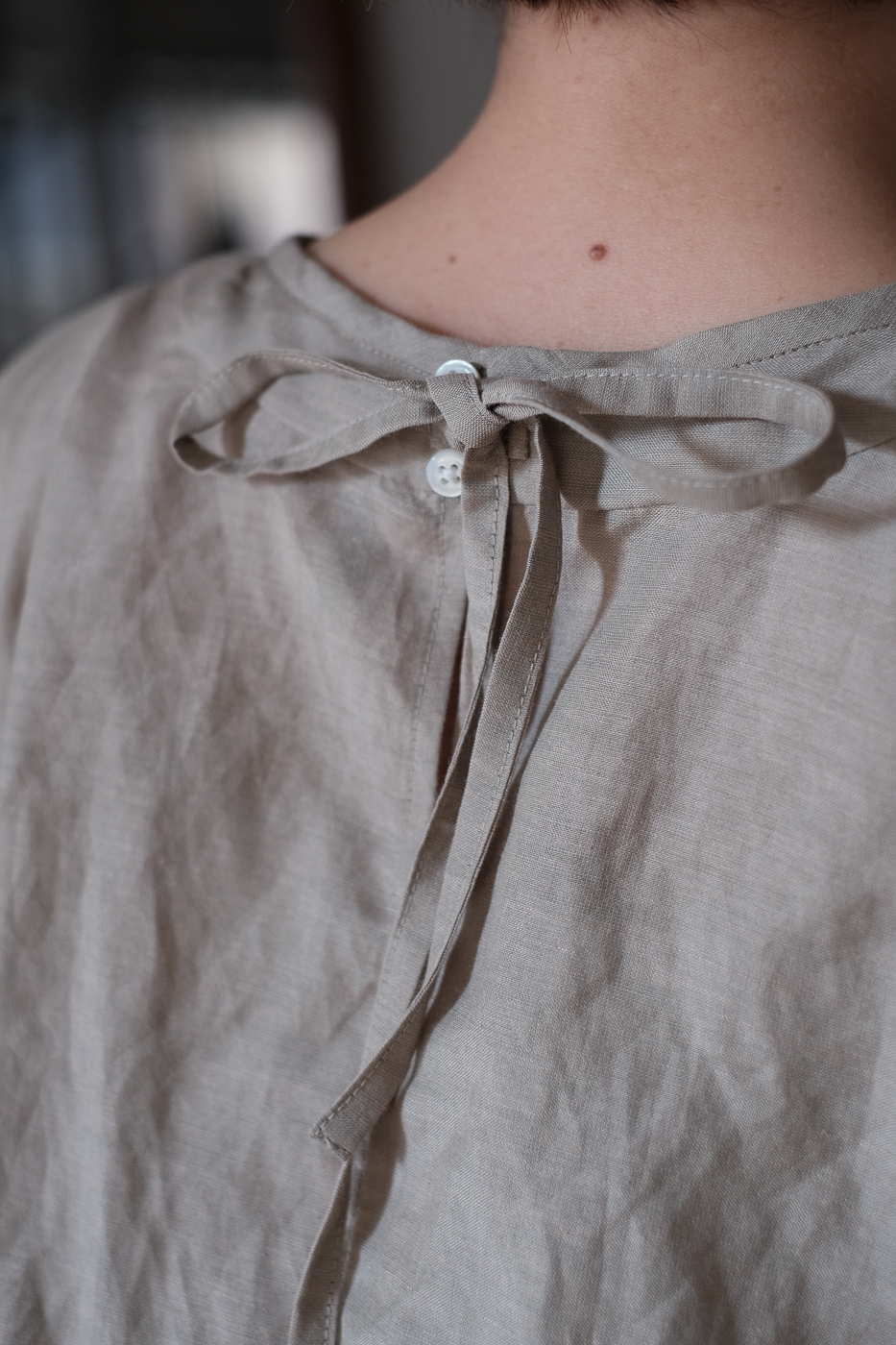 後ろの首元部分のボタンを外して
