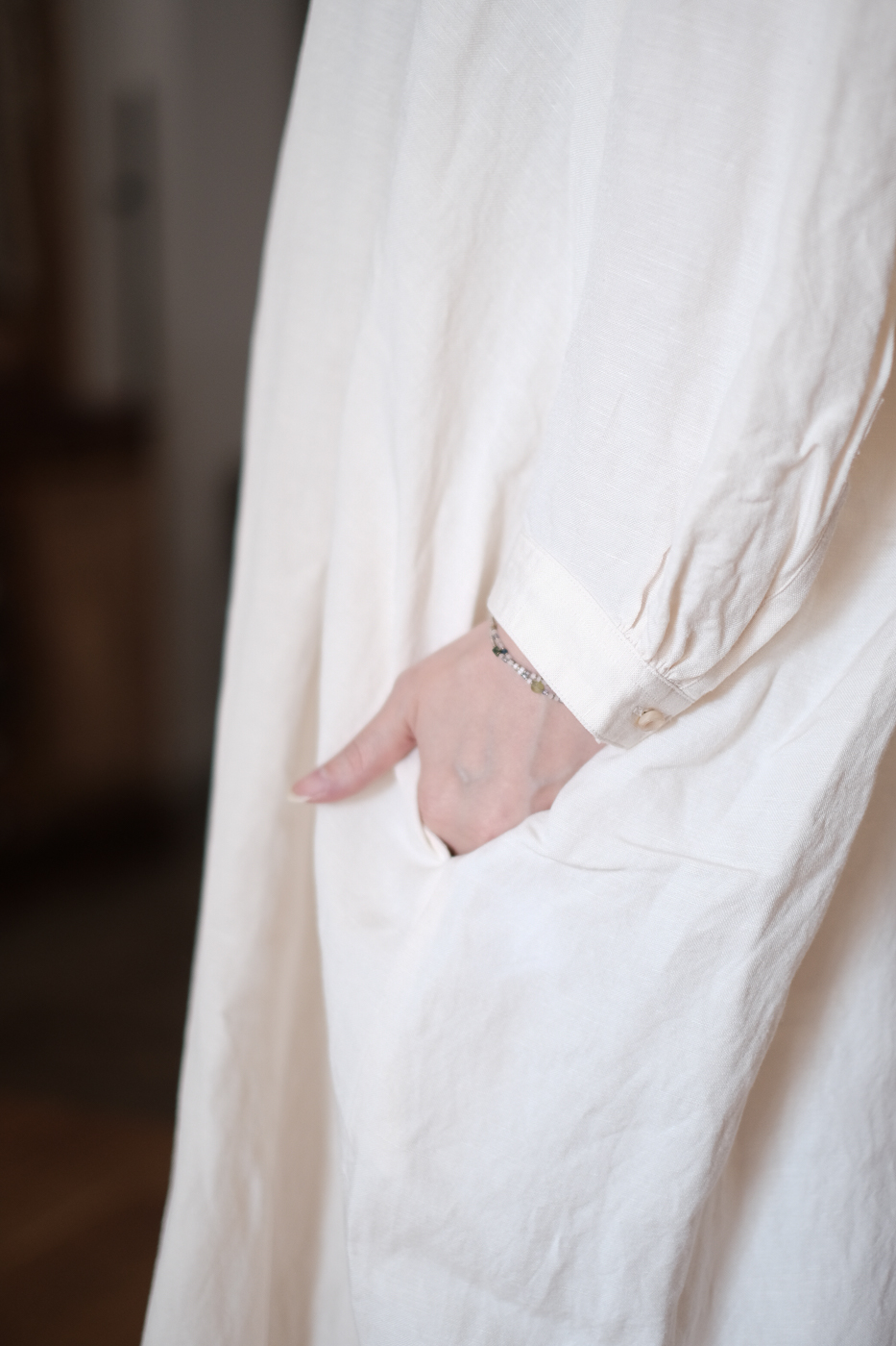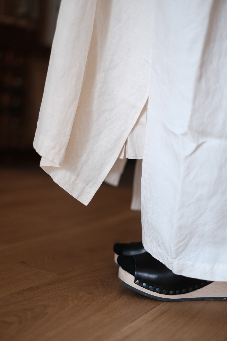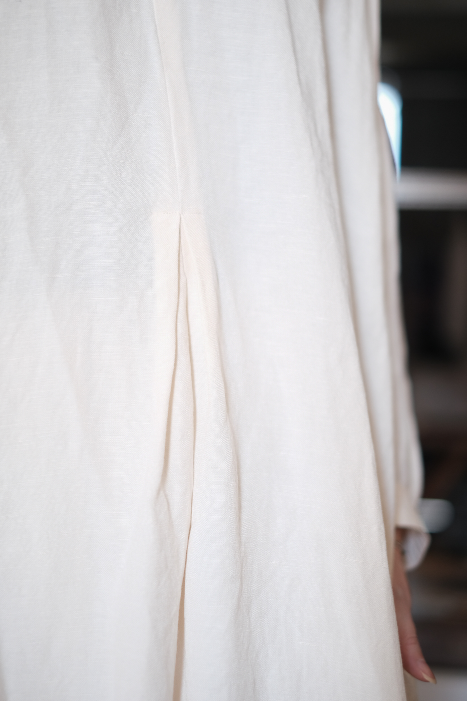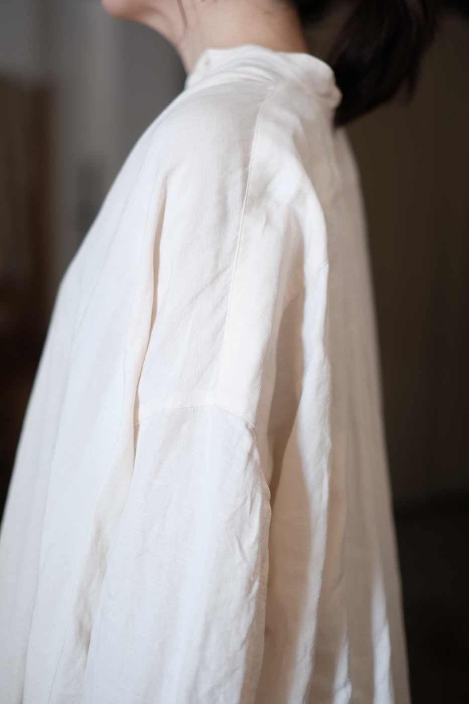 ボタンを開け放ち、後ろに抜いて着ていただくと