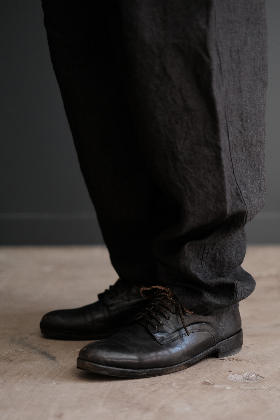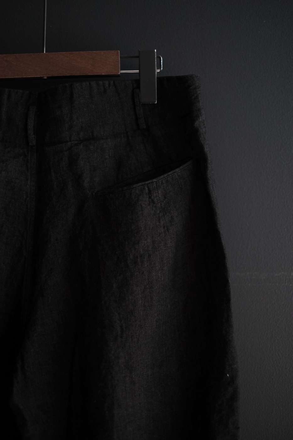 Button tuck trouser (High count indigo linen) col.black