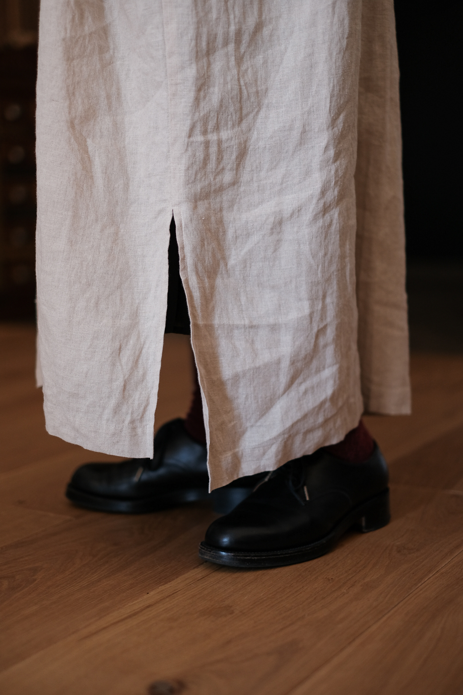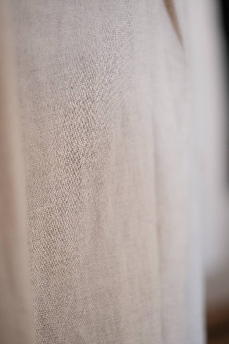 薄手の軽やかなリネン地は、夏場にも涼しく快適に