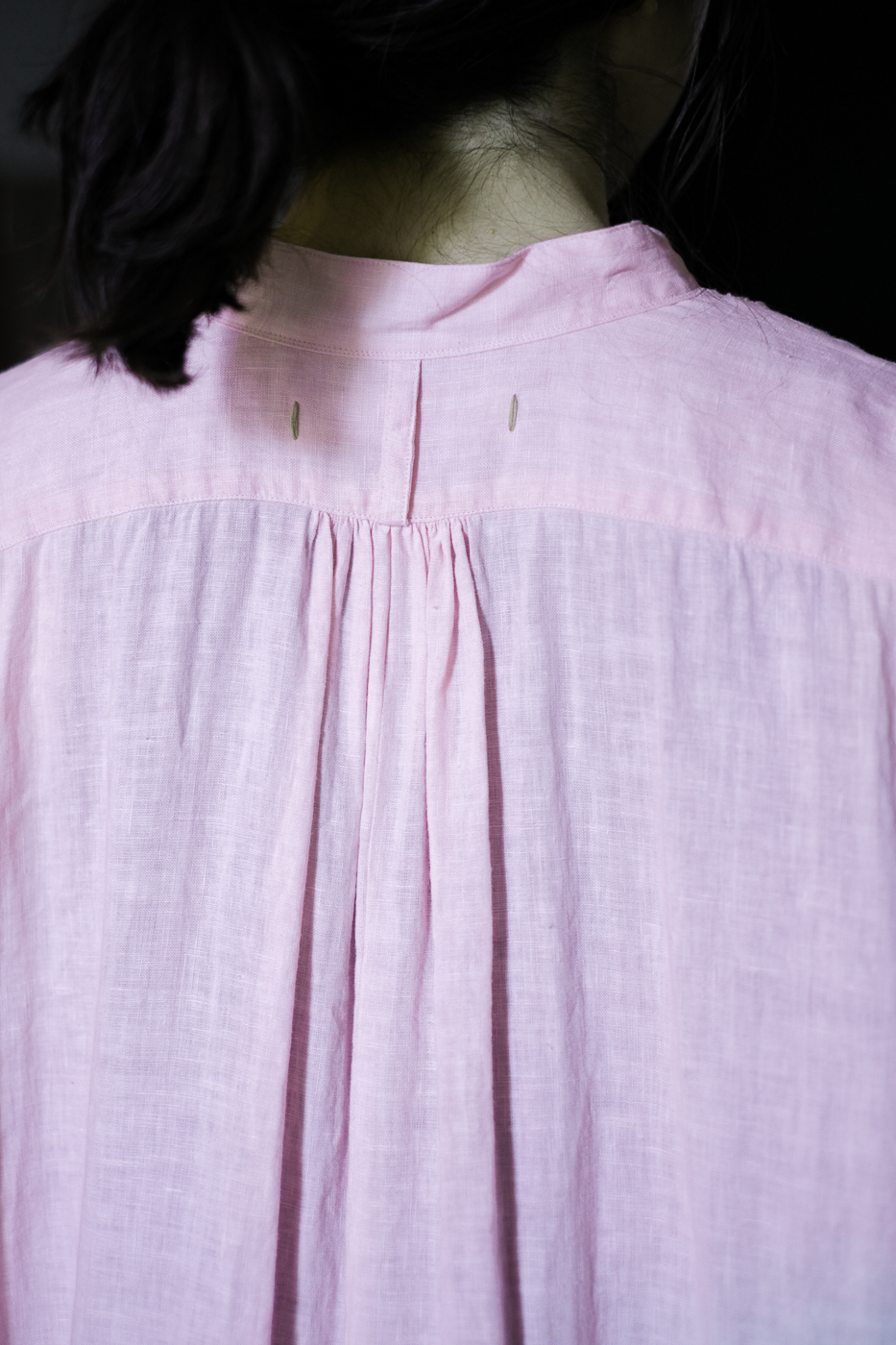 薄手の軽やかなリネン地は、夏場にも涼しく快適に