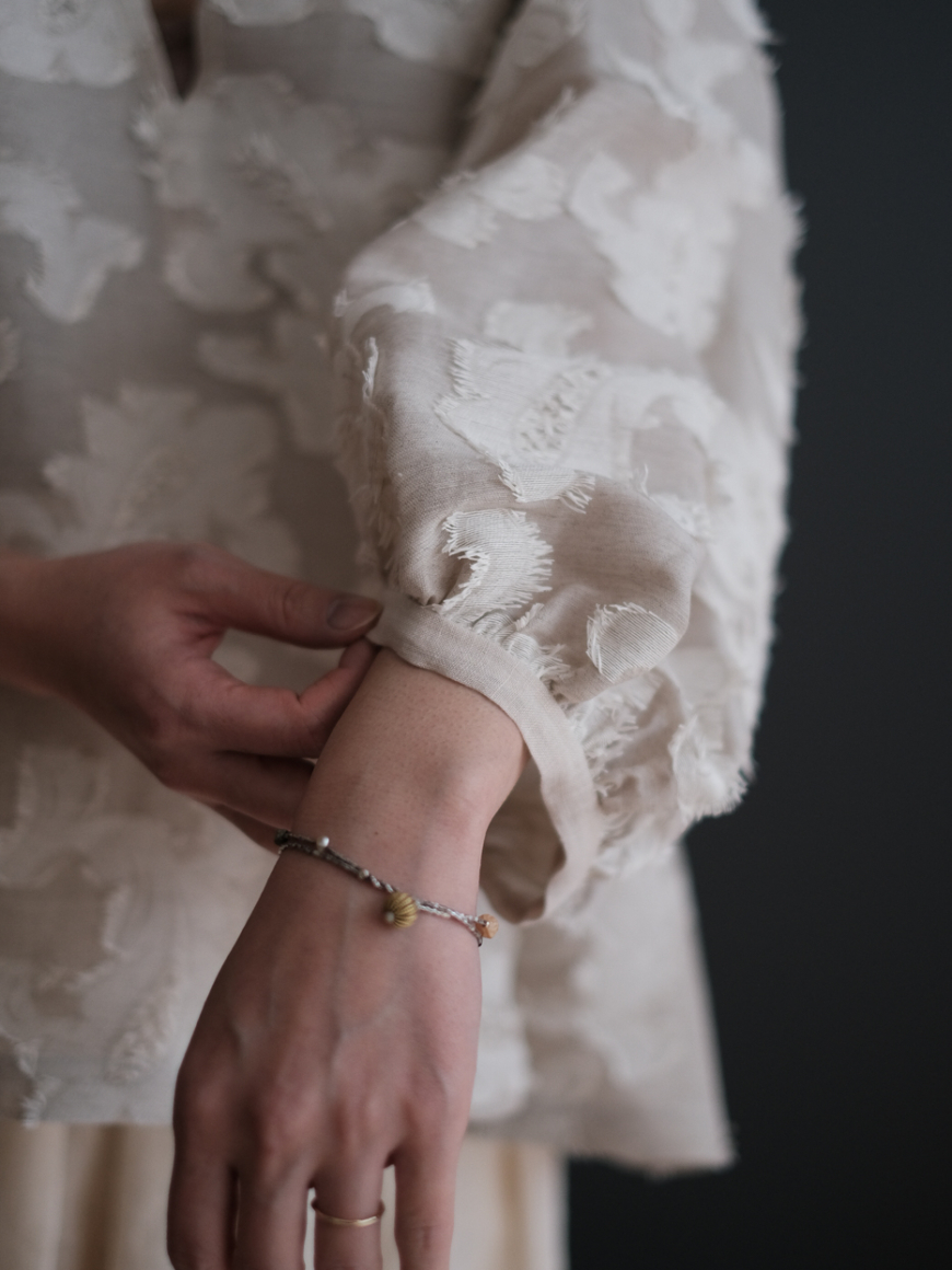 ※素材の特性上、着⽤やクリーニングなどによる収縮や⽩化があります。