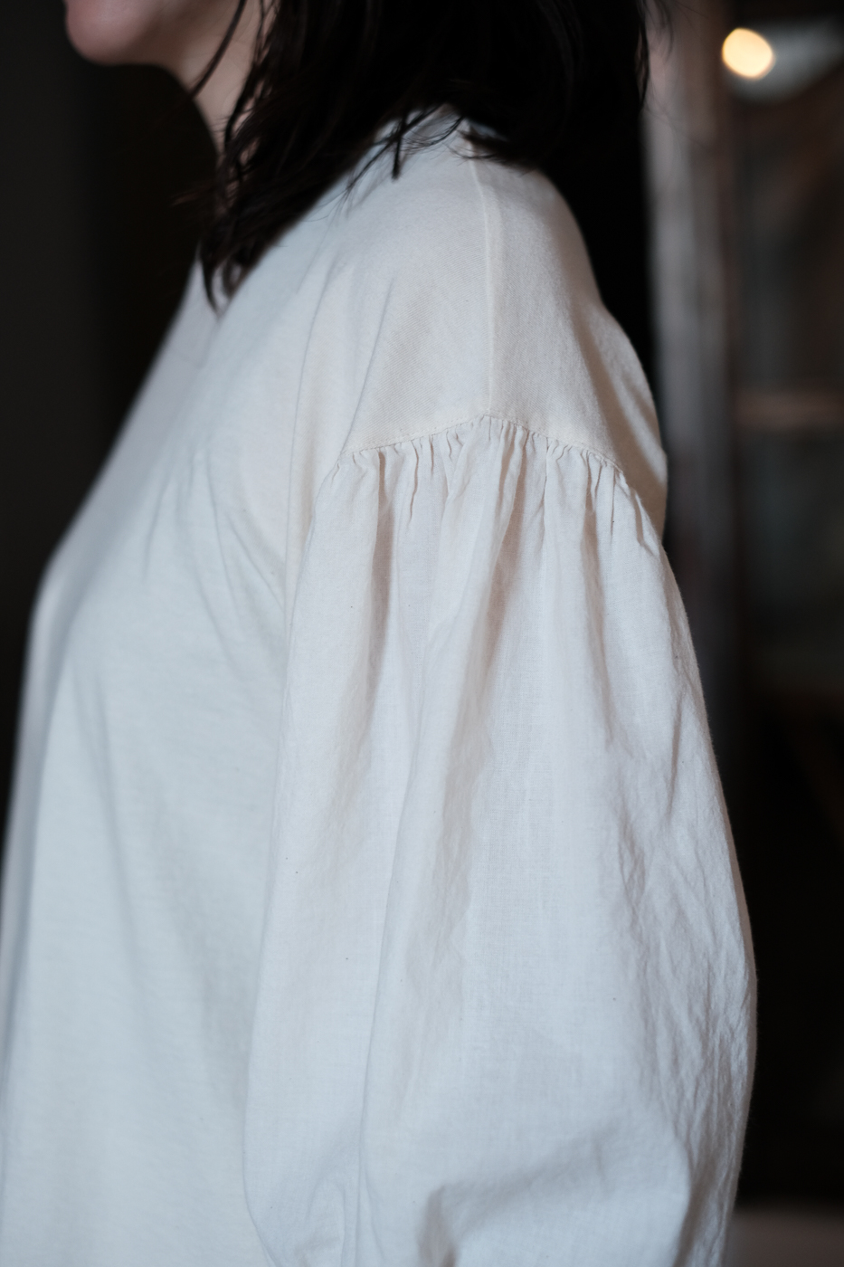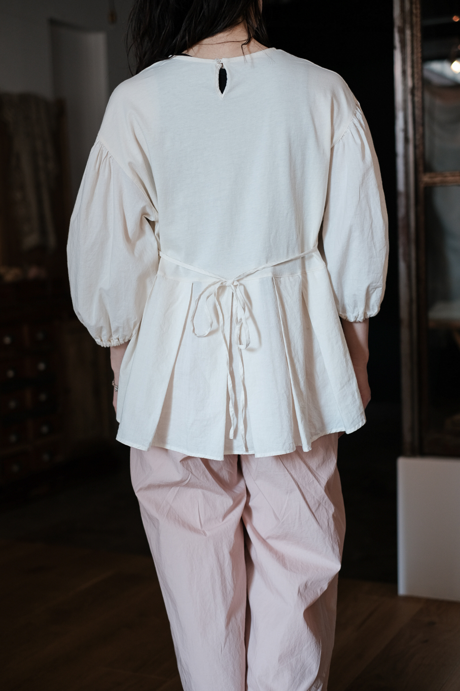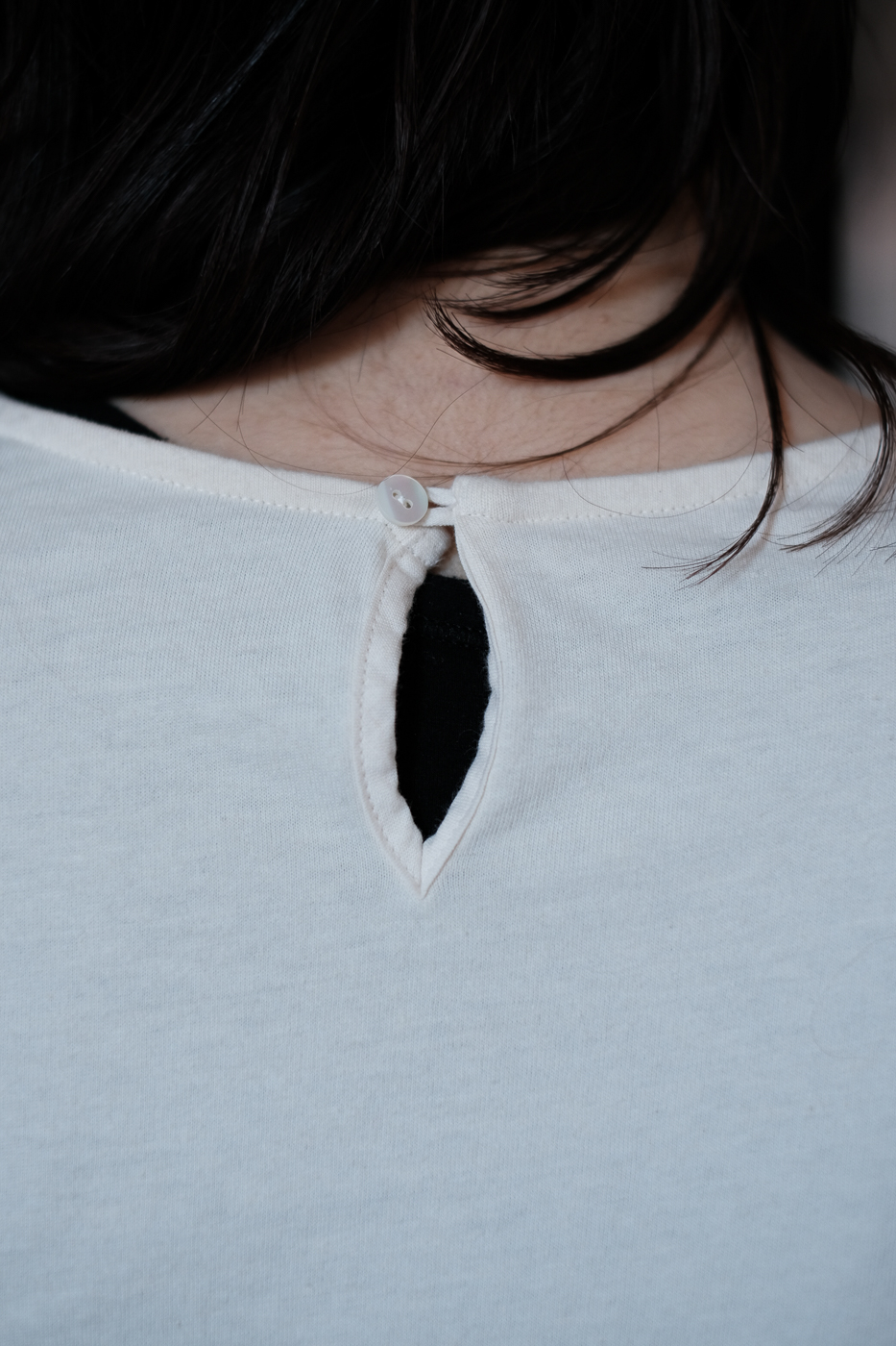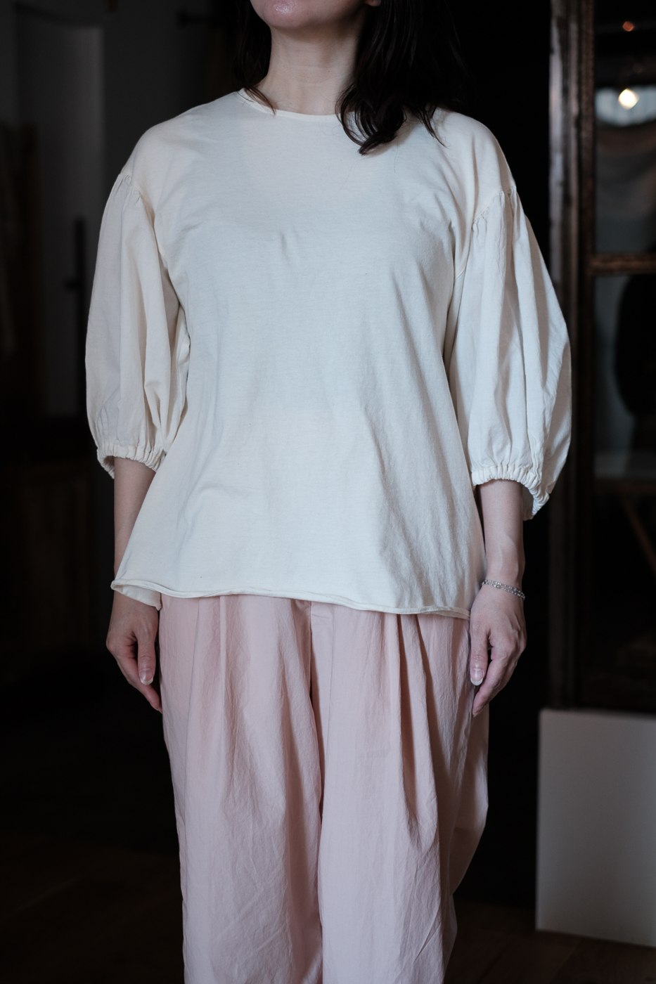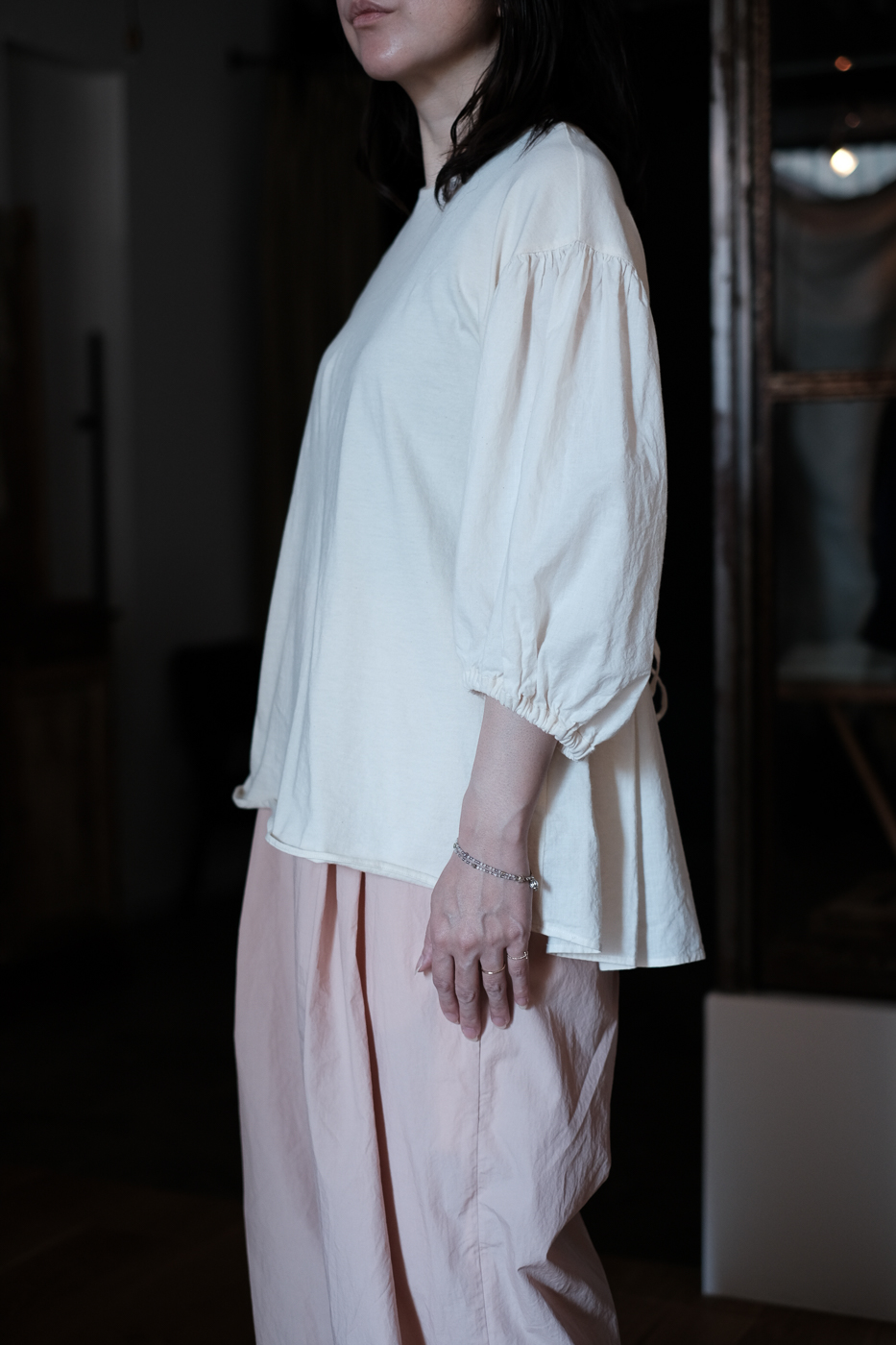 布帛との切り替えの、ブラウス感覚で着て頂けるTシャツ。