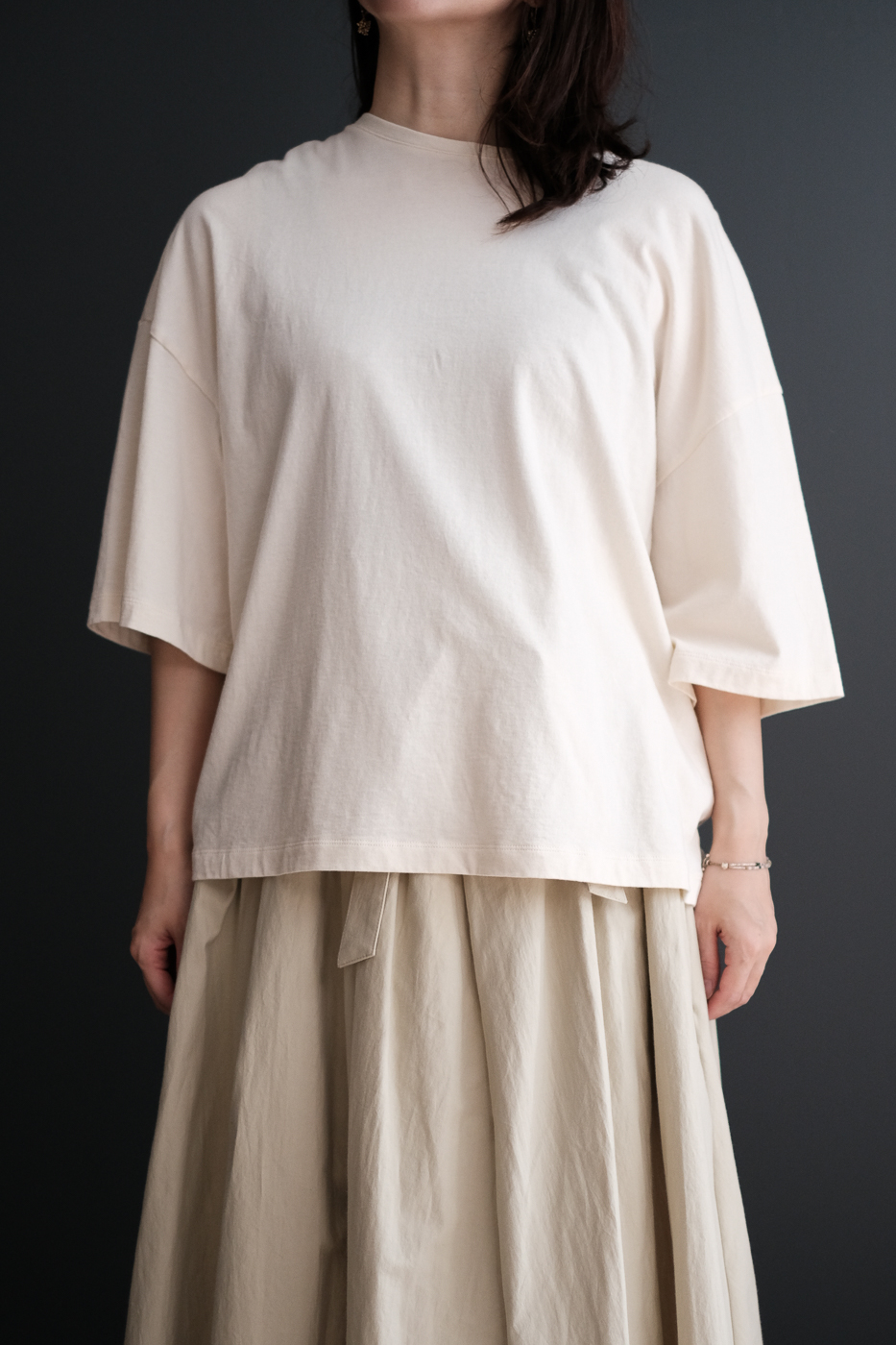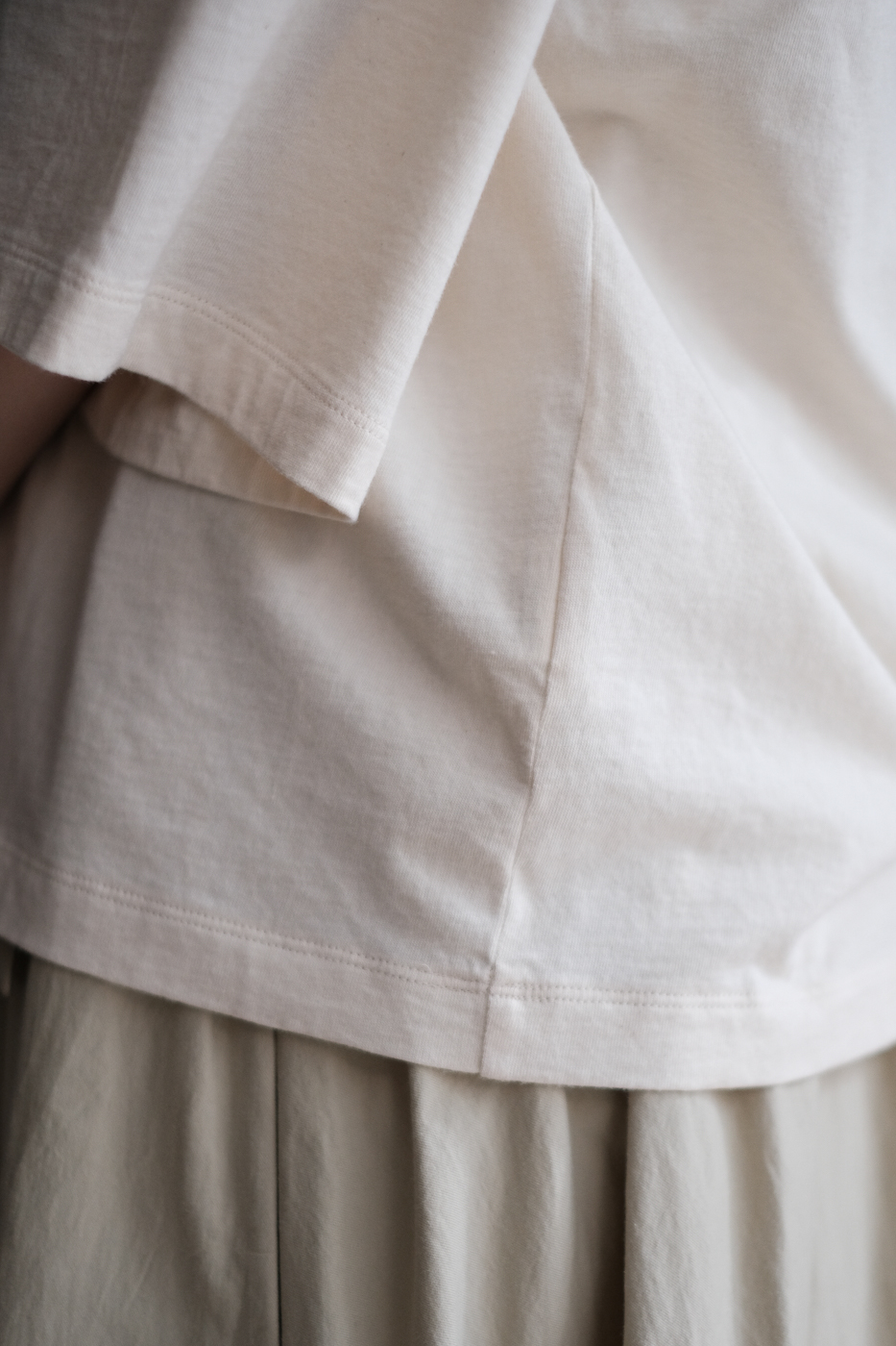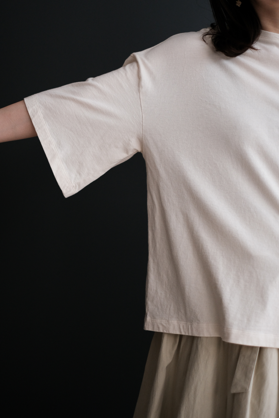 オーガニックコットンを使った、ベルスリーブのTシャツ。