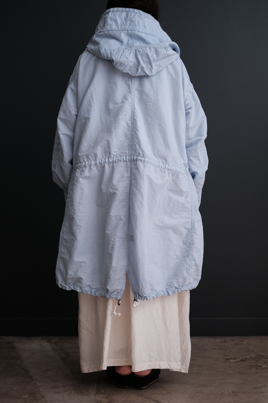 Fish tail long coat (Cotton silk typewriter) col.sax blue