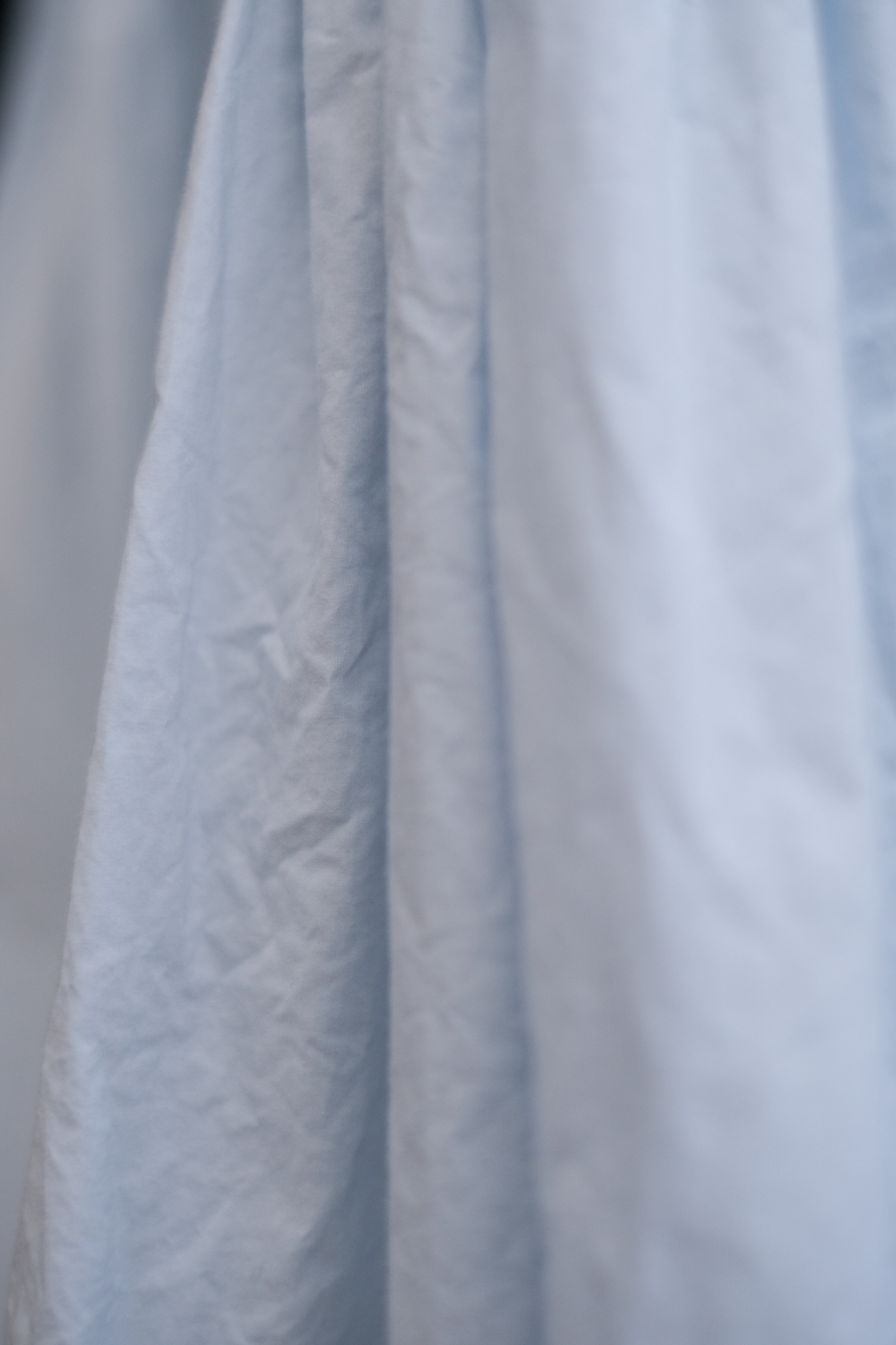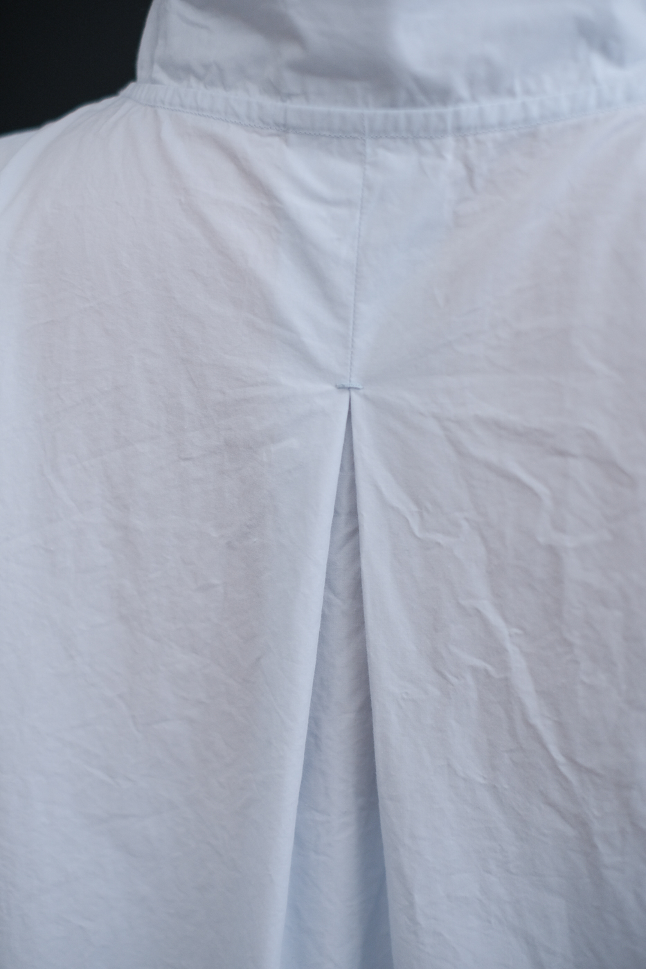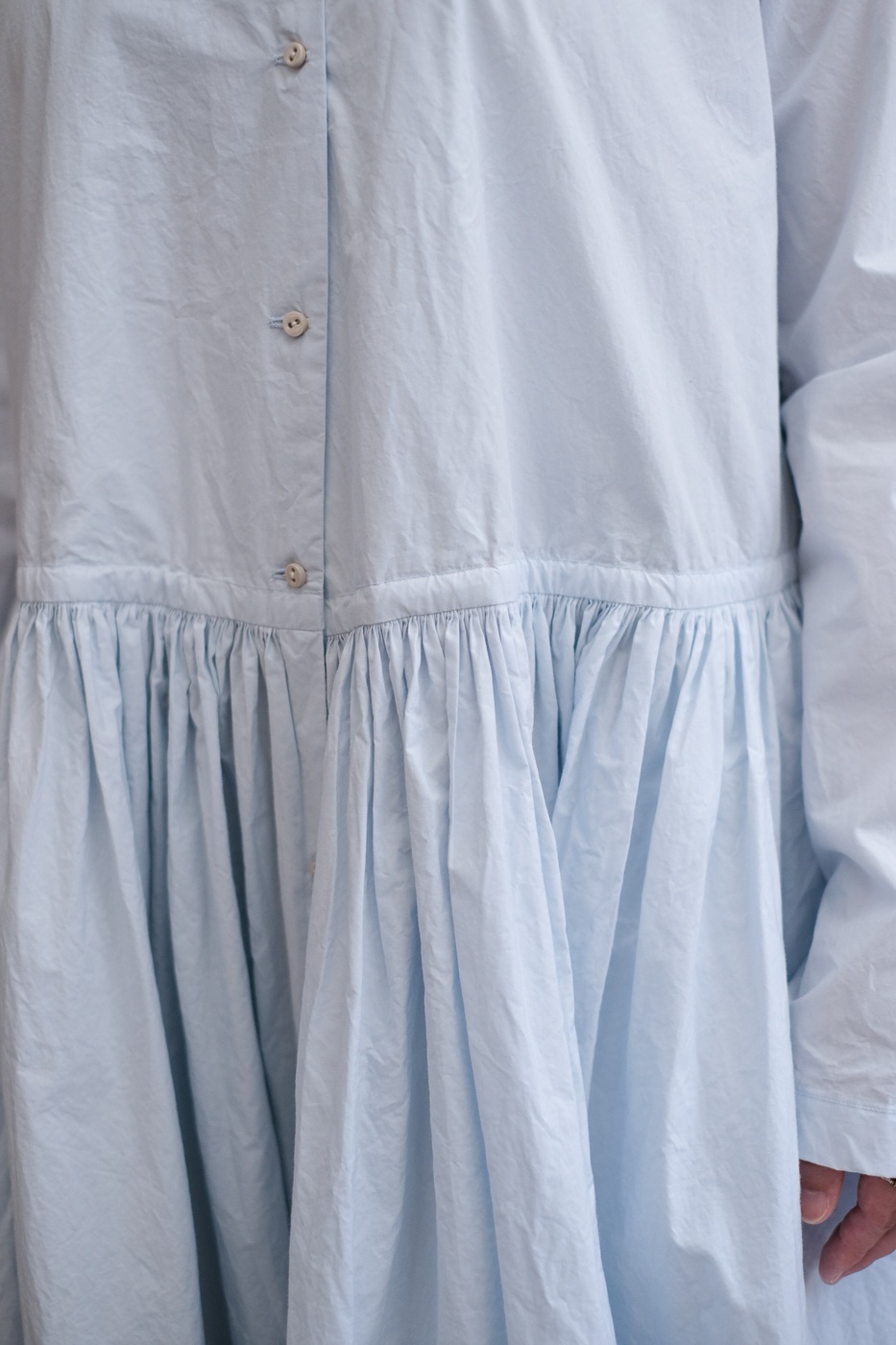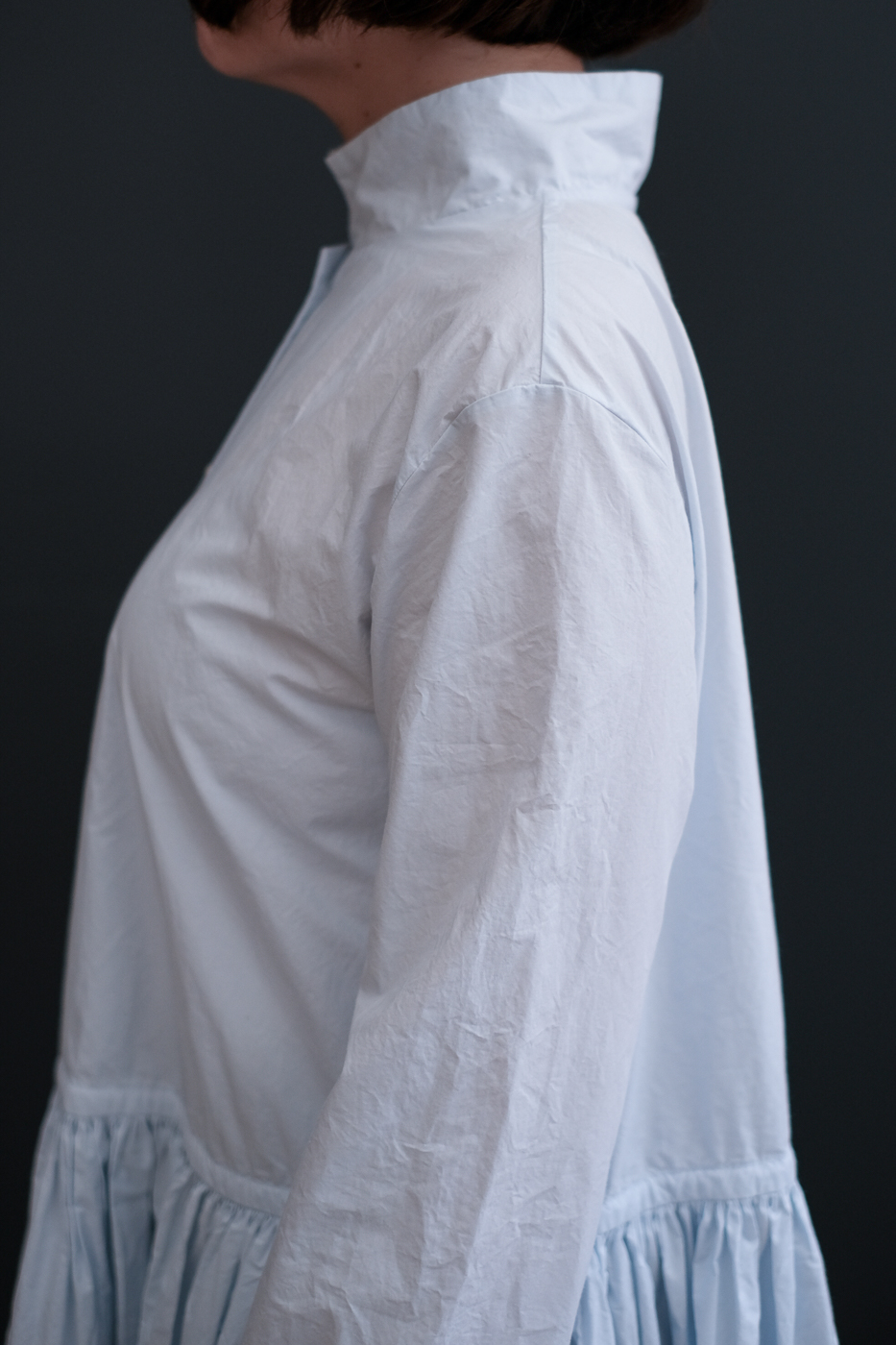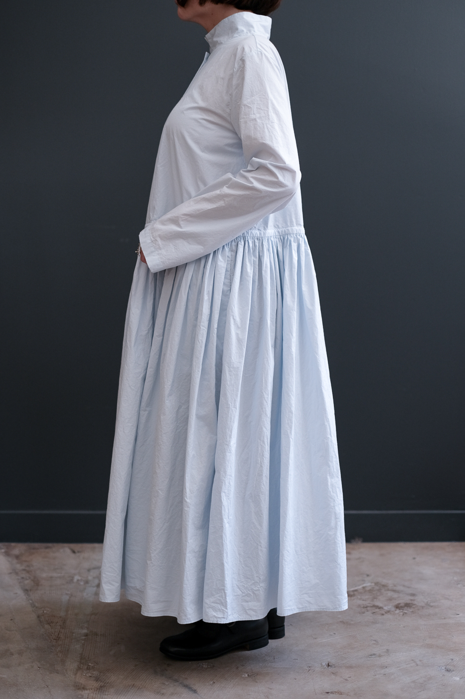 Stand collar gather dress (High count cotton typewriter ) col.sax blue
