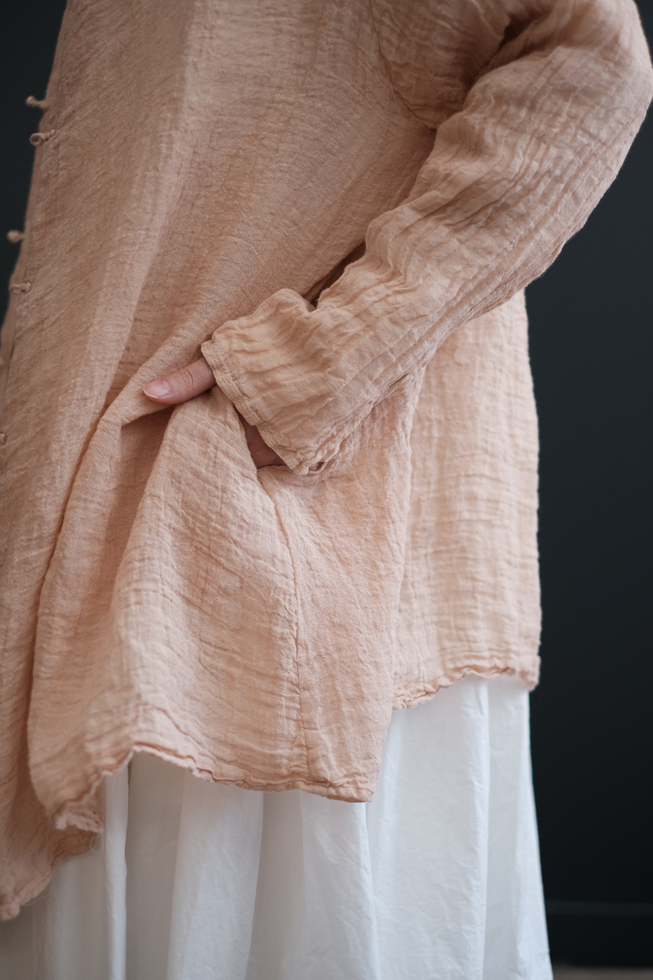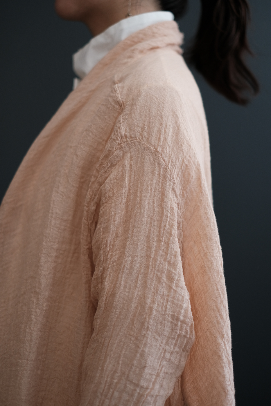Stole shirt (Linen gauze) col.loquat leaves