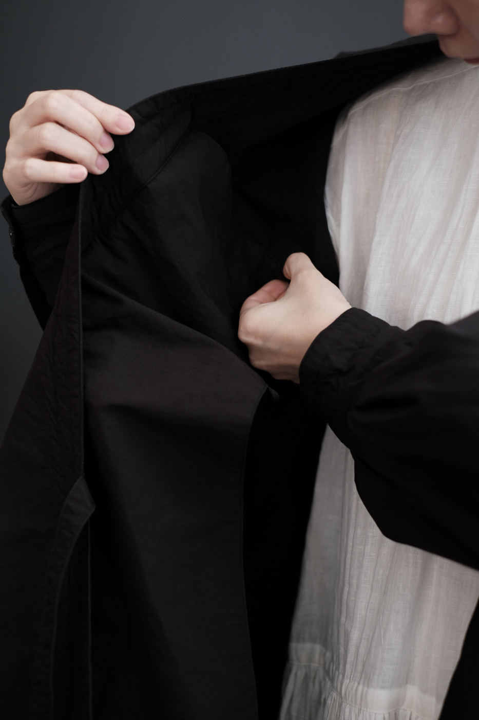 Buck tuck style coat (Cotton silk typewriter) col.black
