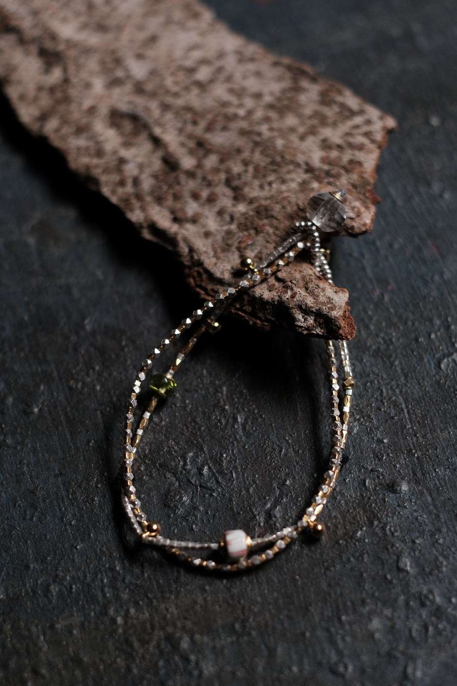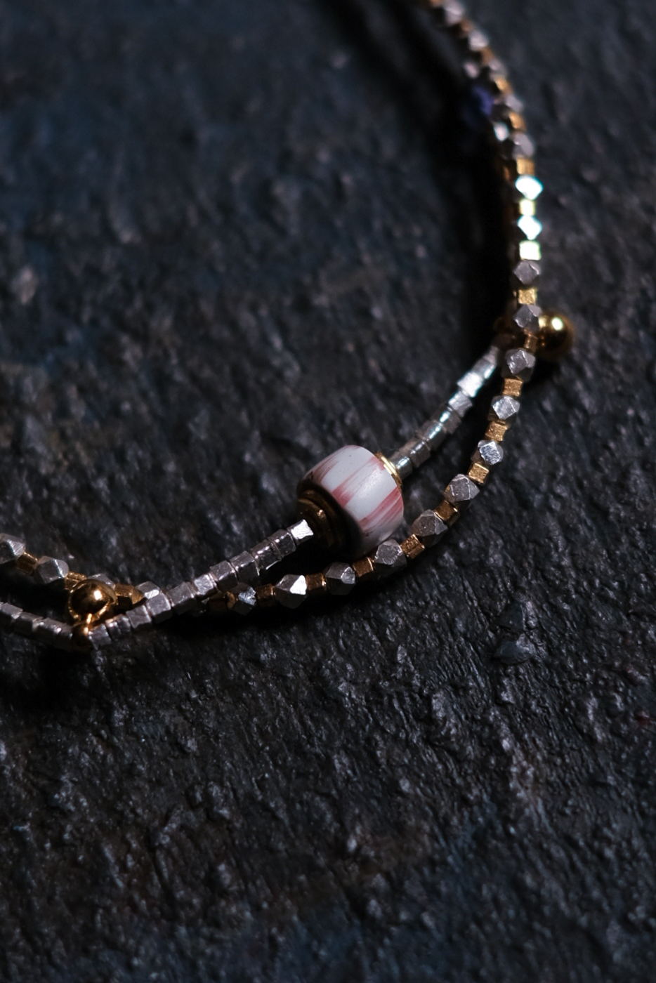 天然石とオールドヴェネチアンガラスビーズの組み合わせ。