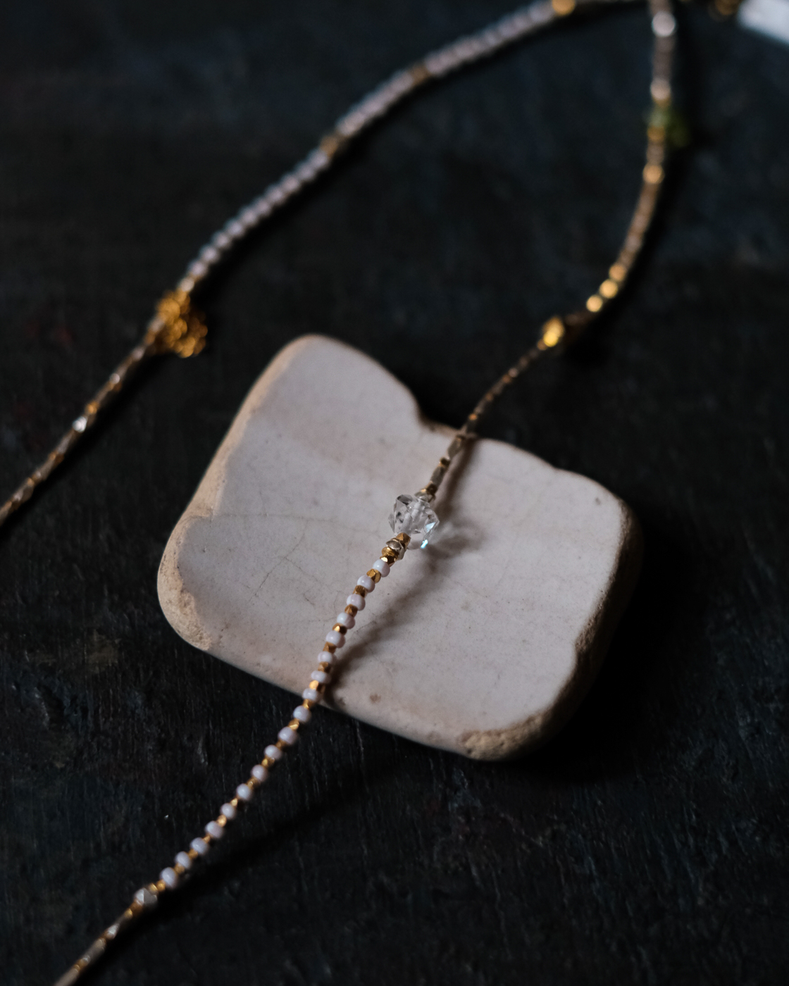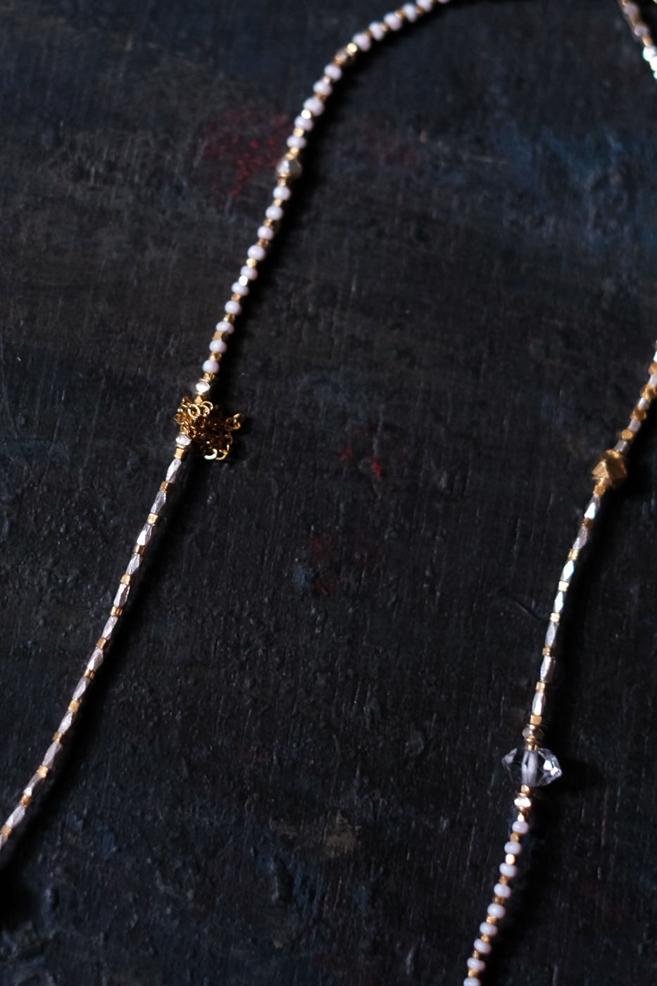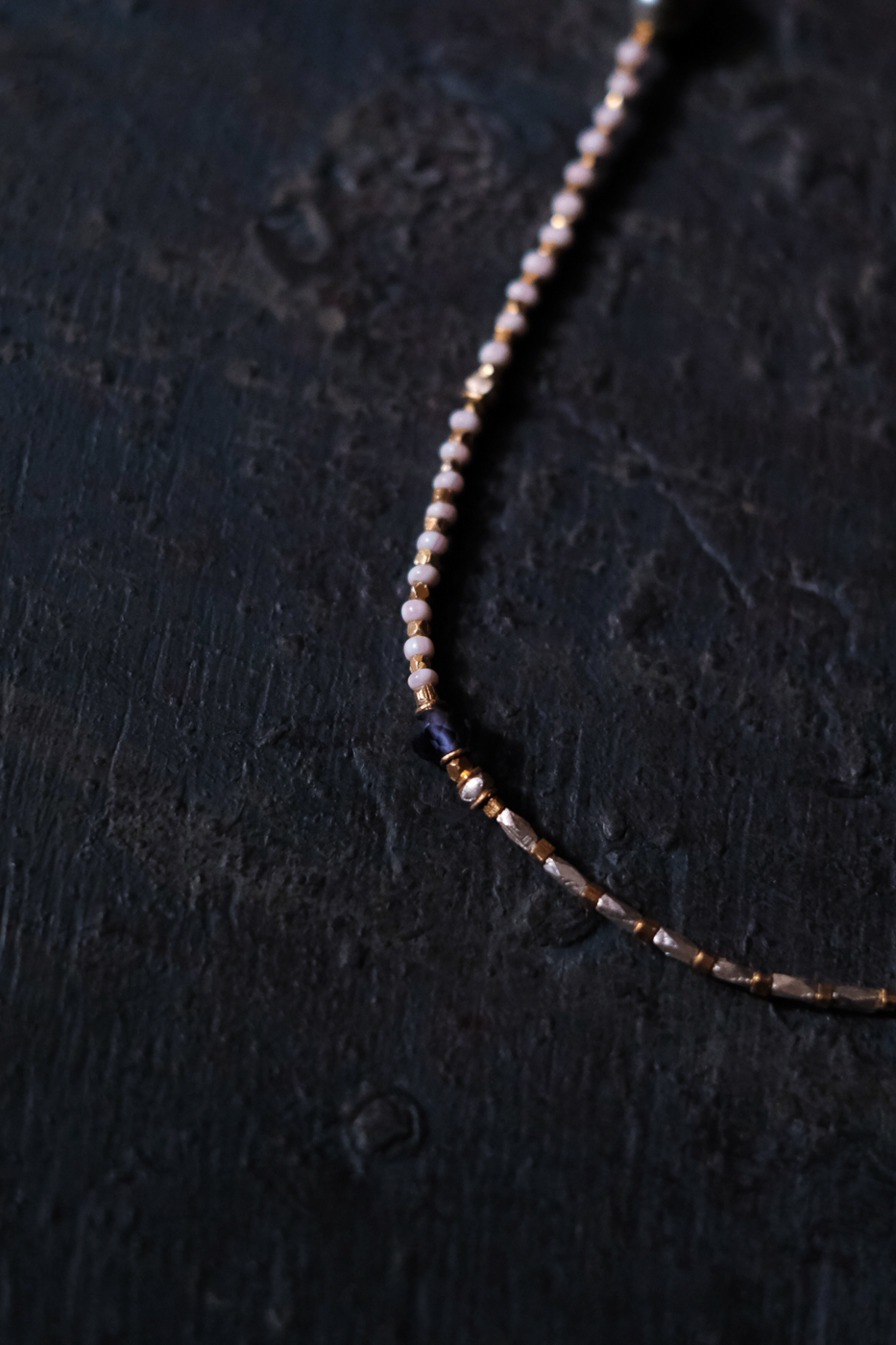 黒真珠をはじめ様々な天然石が粛々とした光を放つ。