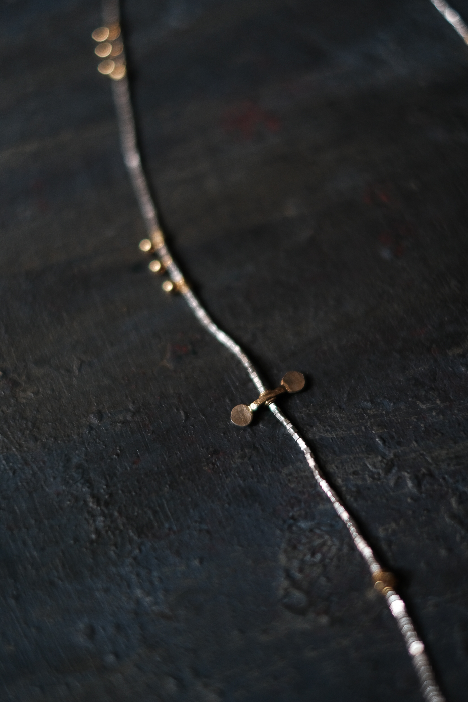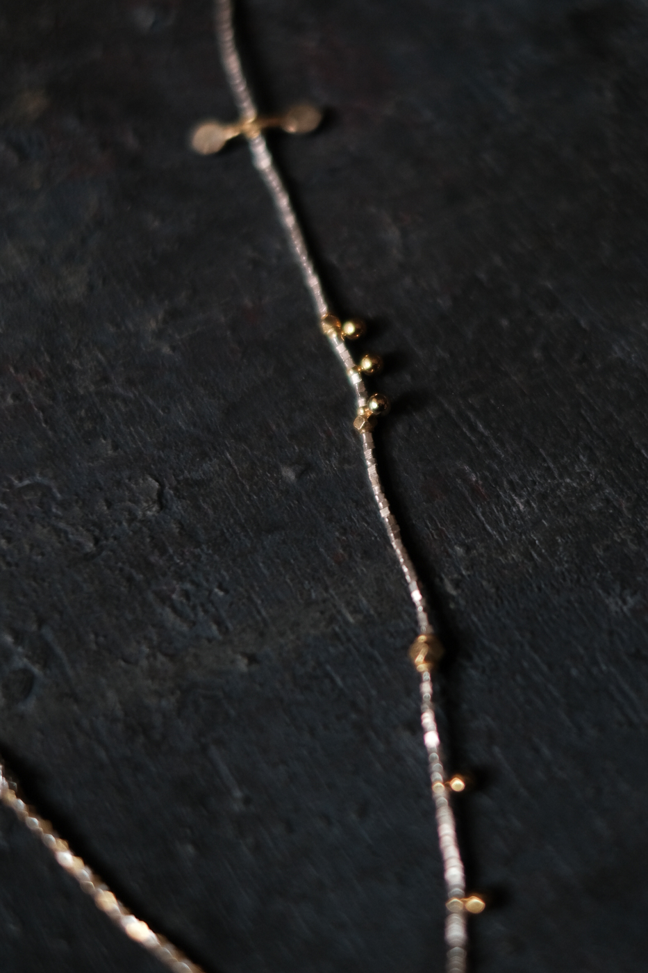 シルバーのチェーンがささやかなアクセントに。