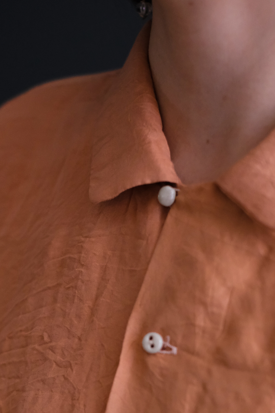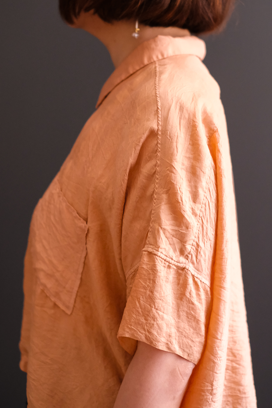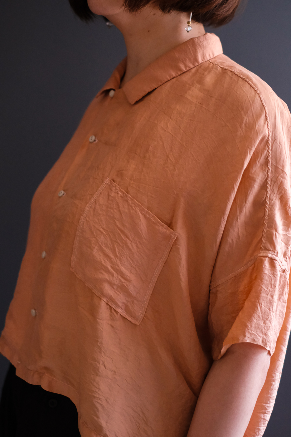 Aloha short shirt (Khadi silk plain) col.loquat leaves