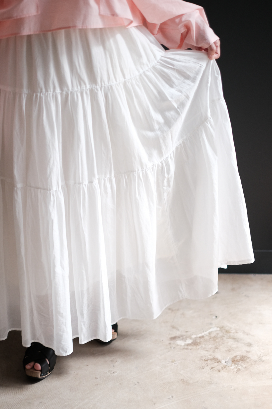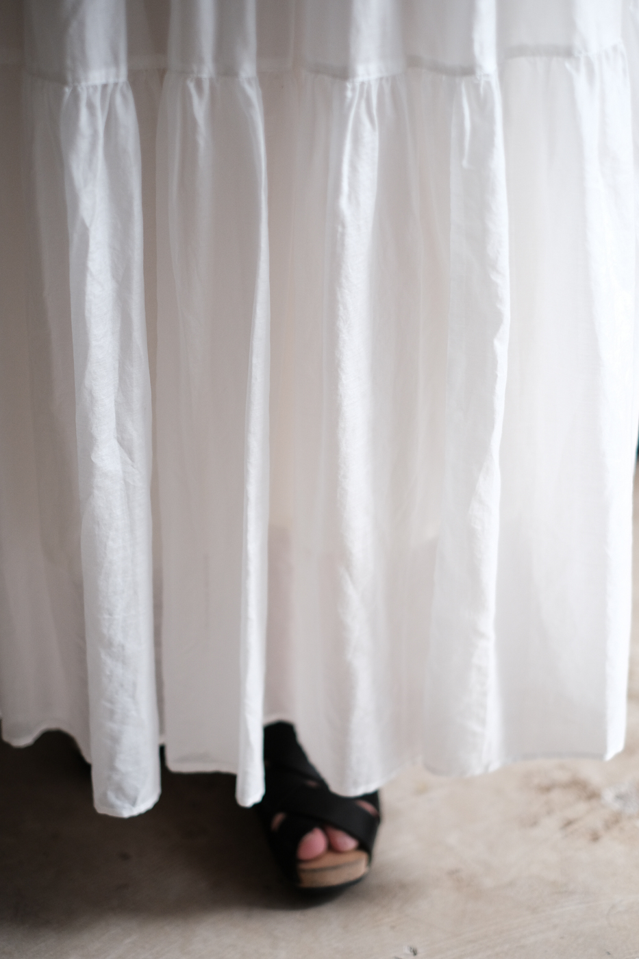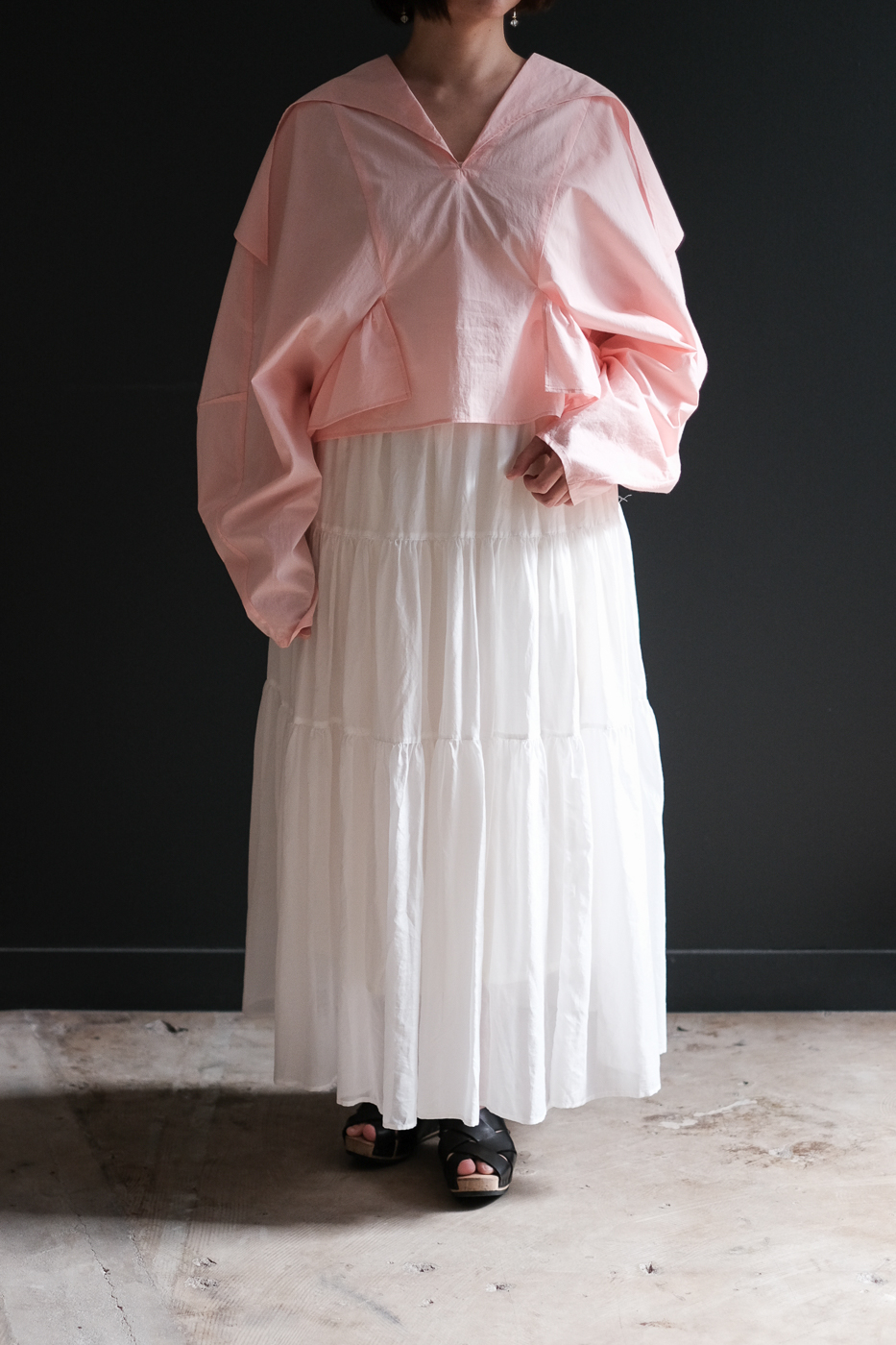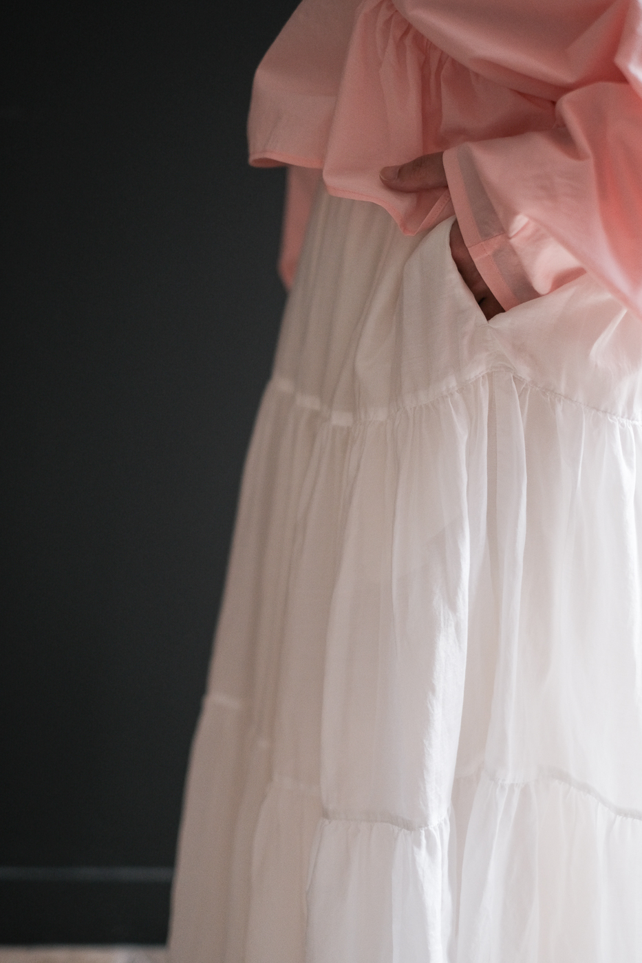 ギャザーを寄せ、動いた時に美しく見える生地の分量感を